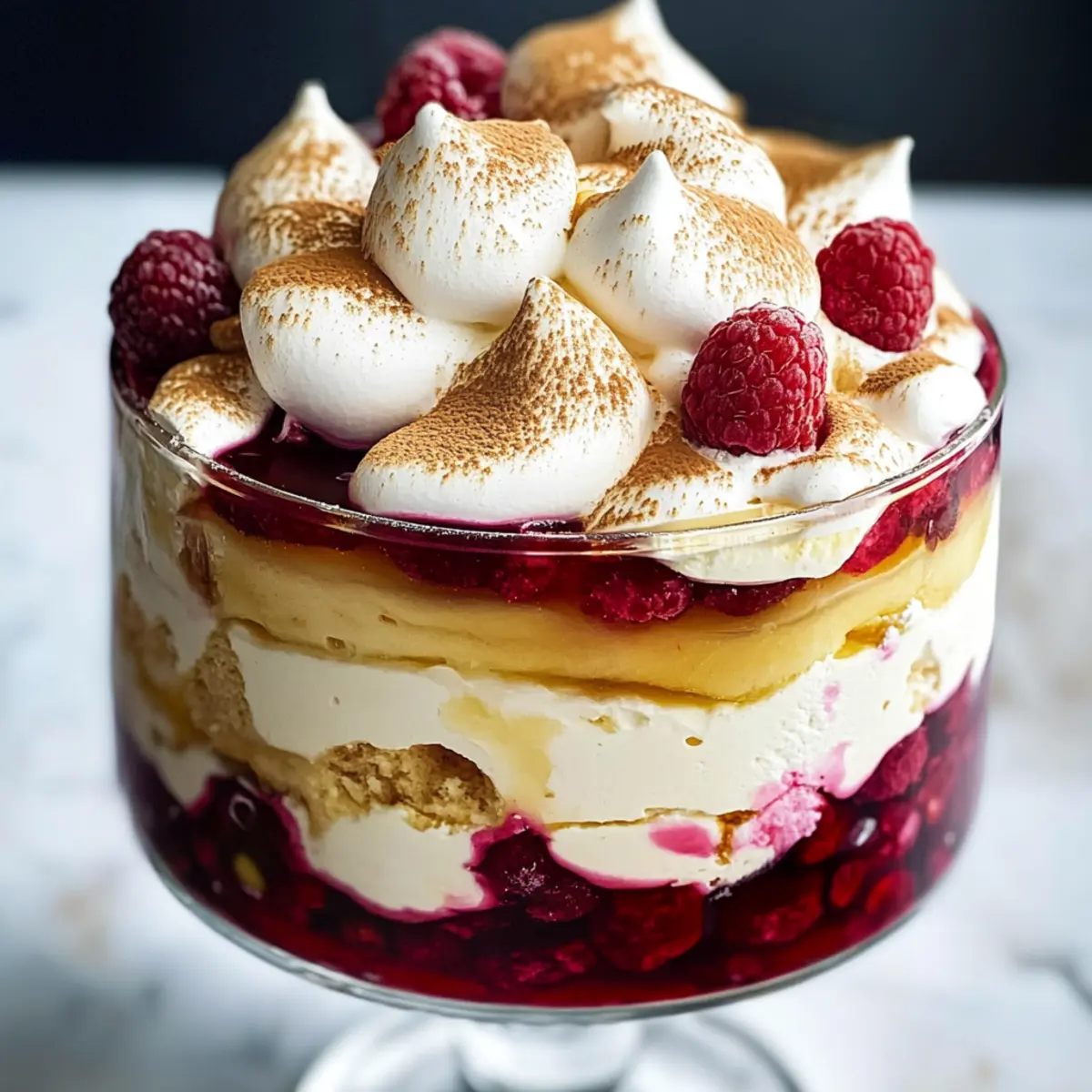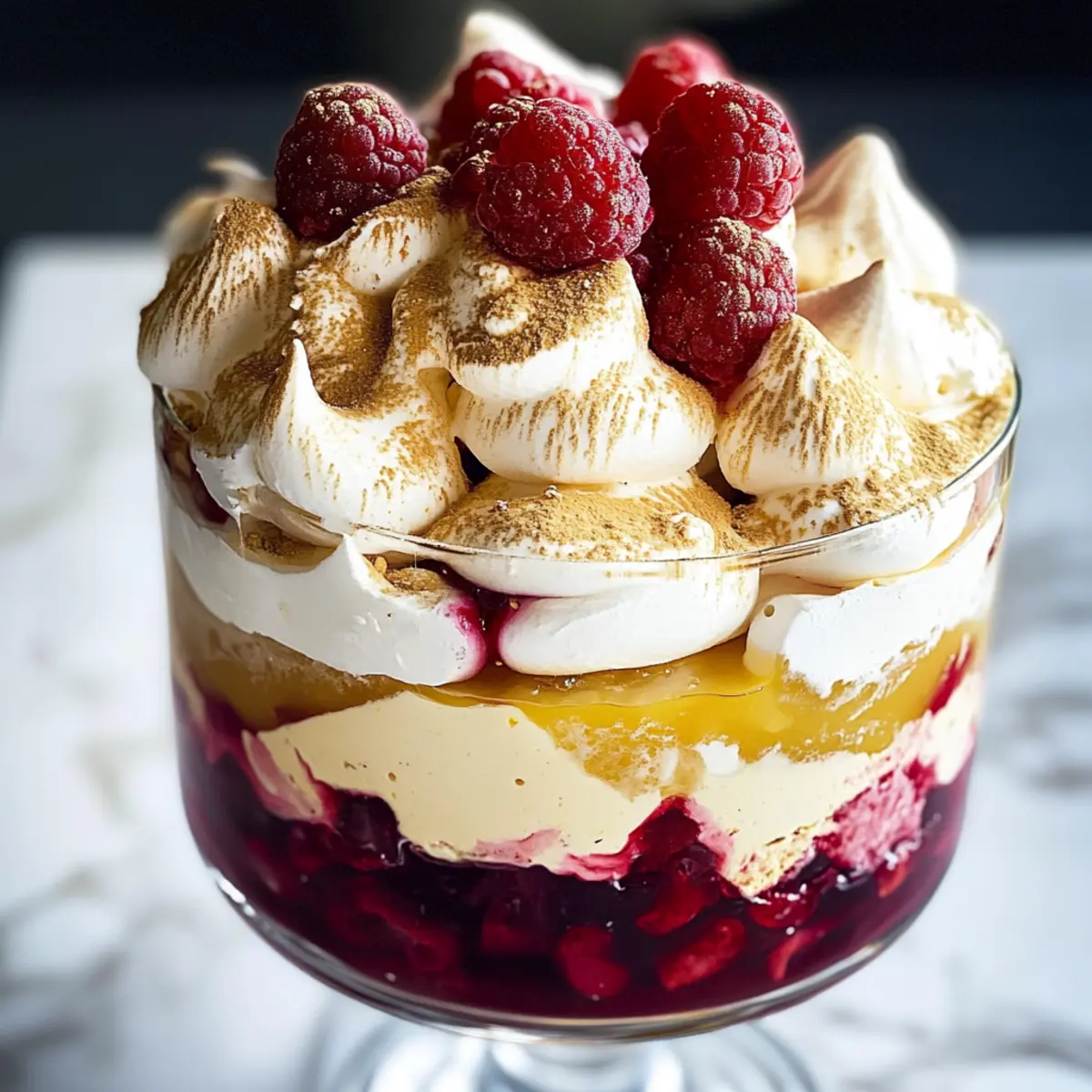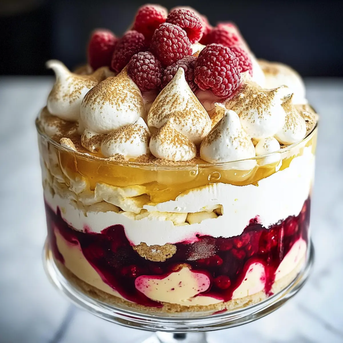 As I stood in my kitchen, the delightful aroma of fresh lemons filled the air, instantly transporting me to sun-drenched citrus groves. This moment marked the beginning of my adventure with Charlotte Ree’s Trifle with Meringue, Lemon Curd & Mascarpone. This stunning dessert combines zesty lemon flavors, airy meringue, and luscious mascarpone cream, creating a layered dream that is both light and indulgent. Not only is this trifle a showstopper for any gathering, but it’s also a breeze to whip up, making it a go-to recipe for those who love to impress without the hassle. Whether you’re celebrating a special occasion or simply treating yourself on a Wednesday, this trifle is the perfect way to elevate your dessert game. Ready to discover how to create this indulgent masterpiece? Let’s dive in! Why is This Trifle Unforgettable? Layers of Bliss: This trifle showcases a beautiful harmony of textures and tastes that will leave everyone wanting more. Bright Citrus Flavor: The zesty lemon curd adds a refreshing punch, brightening up every bite with its delightful tang. Airy Meringue Delight: The crisp meringue provides a satisfying crunch that perfectly balances the rich mascarpone cream. Easy to Assemble: With simple steps and minimal prep, you can create this show-stopping dessert without breaking a sweat. Versatile Variations: Feel free to mix it up! Swap strawberries for the raspberries or experiment with different jelly flavors for a personal touch. Whether you save it for a festive occasion or treat yourself during the week, Charlotte Ree’s Trifle with Meringue, Lemon Curd & Mascarpone is sure to impress! If you loved this dessert, why not also try our refreshing Berry Salad with Creamy Lemon Herb Dressing for a light and tasty side? Charlotte Ree’s Trifle Ingredients Elevate your dessert game with these essential components! For the Jelly • Jelly – Choose a flavor that complements the tangy lemon, either homemade or store-bought. For the Meringue • Egg Whites (4 large) – Use fresh for the best meringue; no direct substitute exists for this essential layer. • Caster Sugar (200g) – Superfine sugar is ideal for achieving that perfect airy texture in the meringue. • White Wine Vinegar (1 tsp) – Stabilizes the meringue; lemon juice can be a quick substitute if needed. • Cornflour (1 tsp) – Aids in creating a stable meringue; optional, but omitting may slightly affect the texture. For the Lemon Curd • Eggs (4 whole, 3 yolks) – The base of the curd, adding creaminess and richness. • Lemon Zest and Juice (from 3 lemons) – Infuses essential citrus flavor; swap with lime for a different twist. • Unsalted Butter (175g, cubed) – Brings richness to the lemon curd; use salted butter if you prefer. • Caster Sugar (220g) – Sweetens the lemon curd and balances the tartness perfectly. For the Mascarpone Cream • Mascarpone (250g) – Creates the creamy layer in the trifle; cream cheese can work as a substitute, but with a flavor variation. • Thickened Cream (250ml) – Whipped for fluffiness; heavy cream is a suitable alternative. For Assembly • Savitardi Biscuits (400g) – These provide structure and a delightful texture; ladyfingers are an excellent substitute if needed. • Fresh Raspberries (250g) – Adds freshness and a tantalizing tartness; feel free to replace with strawberries or blueberries. • Edible Gold Dust (Optional) – For that luxurious touch; definitely optional, but a great enhancement! With these ingredients in hand, you’re on your way to creating the dazzling Charlotte Ree’s Trifle with Meringue, Lemon Curd & Mascarpone that will surely impress anyone lucky enough to taste it! Step‑by‑Step Instructions for Charlotte Ree’s Trifle with Meringue, Lemon Curd & Mascarpone Step 1: Prepare the Jelly Begin by boiling 500 ml of water in a kettle. In a mixing bowl, pour the jelly powder and slowly add the boiling water, stirring until fully dissolved. Next, mix in an equal quantity of cold water for temperature adjustment. Pour this vibrant jelly mixture into a large trifle bowl and refrigerate for about 4 hours, or until it is completely set and firm to the touch. Step 2: Make the Meringue Preheat your oven to 150°C (300°F) and line a baking tray with parchment paper. In a clean mixing bowl, whip the 4 large egg whites with an electric mixer until soft peaks form. Gradually add 200g of caster sugar, continuing to whip until you achieve stiff peaks. Gently fold in 1 tsp of white wine vinegar and 1 tsp of cornflour before piping rounds onto the prepared baking tray. Bake in the oven for 1 hour at 120°C (248°F) until crisp but not browned, then turn off the oven and allow them to cool inside. Step 3: Whisk the Lemon Curd For the lemon curd, set up a double boiler by placing a heatproof bowl over simmering water. Add 4 whole eggs, 3 egg yolks, 220g of caster sugar, the zest and juice from 3 lemons, and whisk continuously for about 30 minutes. The mixture should thicken to a custard-like consistency. When thickened, remove from heat and gradually mix in 175g of cubed unsalted butter, stirring until smooth. Allow the lemon curd to cool completely before using. Step 4: Prepare the Mascarpone Cream In a mixing bowl, beat together 250g of mascarpone cheese and 50g of caster sugar using a hand mixer until smooth and creamy. In a separate bowl, whip 250ml of thickened cream until stiff peaks form. Carefully fold the whipped cream into the mascarpone mixture, ensuring you have a light and fluffy consistency. Set aside this dreamy mascarpone cream as you’ll use it to assemble the trifle. Step 5: Assemble the Trifle Once the jelly is set, it’s time to create layers for your Charlotte Ree’s Trifle. Start by smashing 400g of savoiardi biscuits at the bottom of the trifle bowl. Pour a generous layer of your silky lemon curd over the biscuits, followed by a layer of the luscious mascarpone cream. Repeat these layers, alternating between 