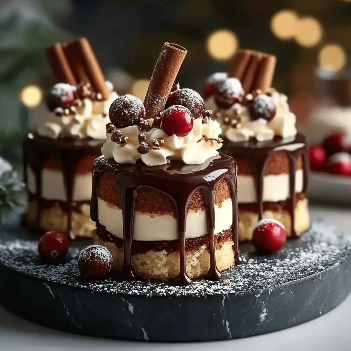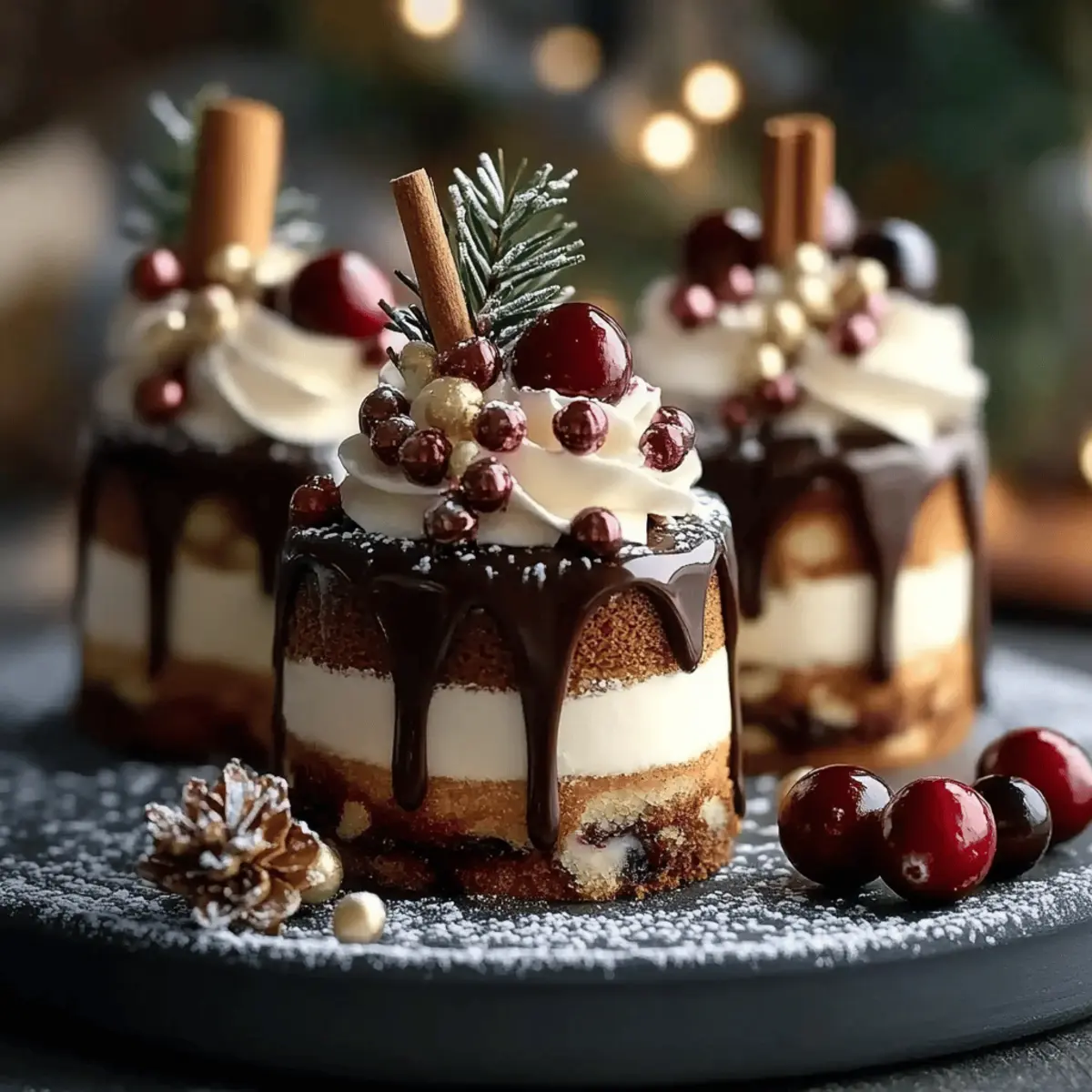 As I stood in my kitchen, the scent of cocoa and vanilla filled the air, instantly transporting me to nostalgic holiday gatherings where sweet treats ruled the dessert table. These Mini Christmas Drip Cakes with Chocolate Ganache & Festive Toppings are not just a sight to behold; they’re a celebration of flavor and creativity wrapped up in a single delightful bite. With their customizable garnishes and the option to make them gluten-free, these cakes are incredibly versatile—perfect for impressing guests or simply treating yourself during the festive season. Each fluffy layer drips with rich chocolate ganache, and let’s not forget the playful decorations that make them a centerpiece worth talking about. Ready to spread some holiday cheer? Let’s dive into this scrumptious recipe together! Why Choose Chocolate Ganache & Festive Toppings? Irresistible Indulgence: These Mini Christmas Drip Cakes are loaded with rich chocolate ganache that elevates every bite into a moment of bliss. Customization Galore: With endless options for festive toppings, you can create a cake that’s uniquely yours, whether you prefer classic or adventurous decorations. Gluten-Free Friendly: Want to share the joy with everyone? Just swap in gluten-free flour for a recipe that accommodates all! Quick to Make: Whip up these delightful treats in no time, making them perfect for last-minute holiday gatherings. Visual Appeal: The glossy ganache and festive toppings make these mini cakes a stunning centerpiece that’s sure to impress your guests. Enjoy alongside a warm cup of spiced chai or dive into a platter of sweet delights like Christmas Cookie Dip for a festive feast! Chocolate Ganache & Festive Toppings • Get ready to elevate your dessert game with these delightful and customizable toppings! For the Chocolate Ganache Dark Chocolate – This key ingredient creates a rich, luscious ganache; for a sweeter twist, substitute with milk chocolate. Heavy Cream – Essential for the ganache’s creamy texture; don’t skimp on quality for the best results. For the Festive Toppings Fresh Cranberries – Add a pop of color and a tart contrast to the sweetness of the cake. Cinnamon Sticks – Use as elegant decor that also lends a warm, spicy aroma to your dessert table. Rosemary Sprigs – These herbs provide an earthy touch; they look stunning and taste delightful. Gold Sugar Pearls – Perfect for adding a little sparkle and a festive touch to your cakes; get creative with placement! Candied Orange Peel – This is a zesty addition for a unique flavor experience that complements the chocolate ganache beautifully. Feel free to mix and match these toppings to make your Mini Christmas Drip Cakes as festive and personalized as you’d like! Step‑by‑Step Instructions for Mini Christmas Drip Cakes with Chocolate Ganache & Festive Toppings Step 1: Preheat and Prepare Begin by preheating your oven to 175°C (350°F) while you prepare your mini cake pans. Grease each pan thoroughly and line the bottoms with parchment paper to ensure easy cake removal. This step is crucial for achieving that pristine release, allowing your cakes to maintain their shape perfectly when stacked and decorated with chocolate ganache and festive toppings. Step 2: Creaming the Butter and Sugar In a large mixing bowl, cream together room-temperature butter and granulated sugar until the mixture turns pale and fluffy—about 3-5 minutes using an electric mixer. This process incorporates air, yielding a light texture in your Mini Christmas Drip Cakes. Add the eggs one at a time, mixing well after each addition, then blend in the vanilla extract to infuse a delightful flavor. Step 3: Combine Dry Ingredients In a separate bowl, whisk together the all-purpose flour, baking powder, and salt—this forms your dry mixture. Gradually add this dry blend to your creamed butter mixture, alternating with milk. Start and end with the flour mixture, mixing gently until just combined. The batter should be smooth and slightly thick, perfect for layering your mini cakes before drenching them in chocolate ganache. Step 4: Bake Your Cakes Carefully pour the batter into your prepared mini cake pans, smoothing the tops with a spatula for an even bake. Place them in the oven and bake for 15-20 minutes, or until a toothpick inserted in the center comes out clean. The cakes should exhibit a golden color on top and spring back lightly when touched, indicating they are ready to cool. Step 5: Cooling Time Once baked, remove the mini cakes from the oven and let them cool in the pans for about 10 minutes. Gently transfer them to a wire rack to cool completely. This cooling step is essential, as it prevents the whipped cream from melting when you frost your cakes with the rich chocolate ganache and add your festive toppings. Step 6: Whip the Cream While the cakes are cooling, whip the heavy cream and powdered sugar in a bowl until stiff peaks form. Use a hand mixer or stand mixer for best results. This light and airy whipped cream will complement the dense richness of your chocolate ganache beautifully. Transfer the whipped cream to a piping bag to make decorating your cakes both fun and aesthetically pleasing. Step 7: Prepare the Ganache To make the chocolate ganache, heat heavy cream in a saucepan just until it’s about to simmer. Pour the hot cream over the chopped dark chocolate in a bowl, allowing it to sit for a few minutes. This resting period helps melt the chocolate, and then whisk until the ganache is smooth and glossy. The texture should be thick yet pourable for the best drip effect in your Mini Christmas Drip Cakes. Step 8: Decorate with Ganache and Toppings Once the cakes are completely cool, drizzle the chocolate ganache over the top, allowing it to flow down the sides for that signature drip effect. Next, pipe the whipped cream decoratively on top. Finish with your choice of festive toppings such as fresh cranberries, cinnamon sticks, rosemary sprigs, and g