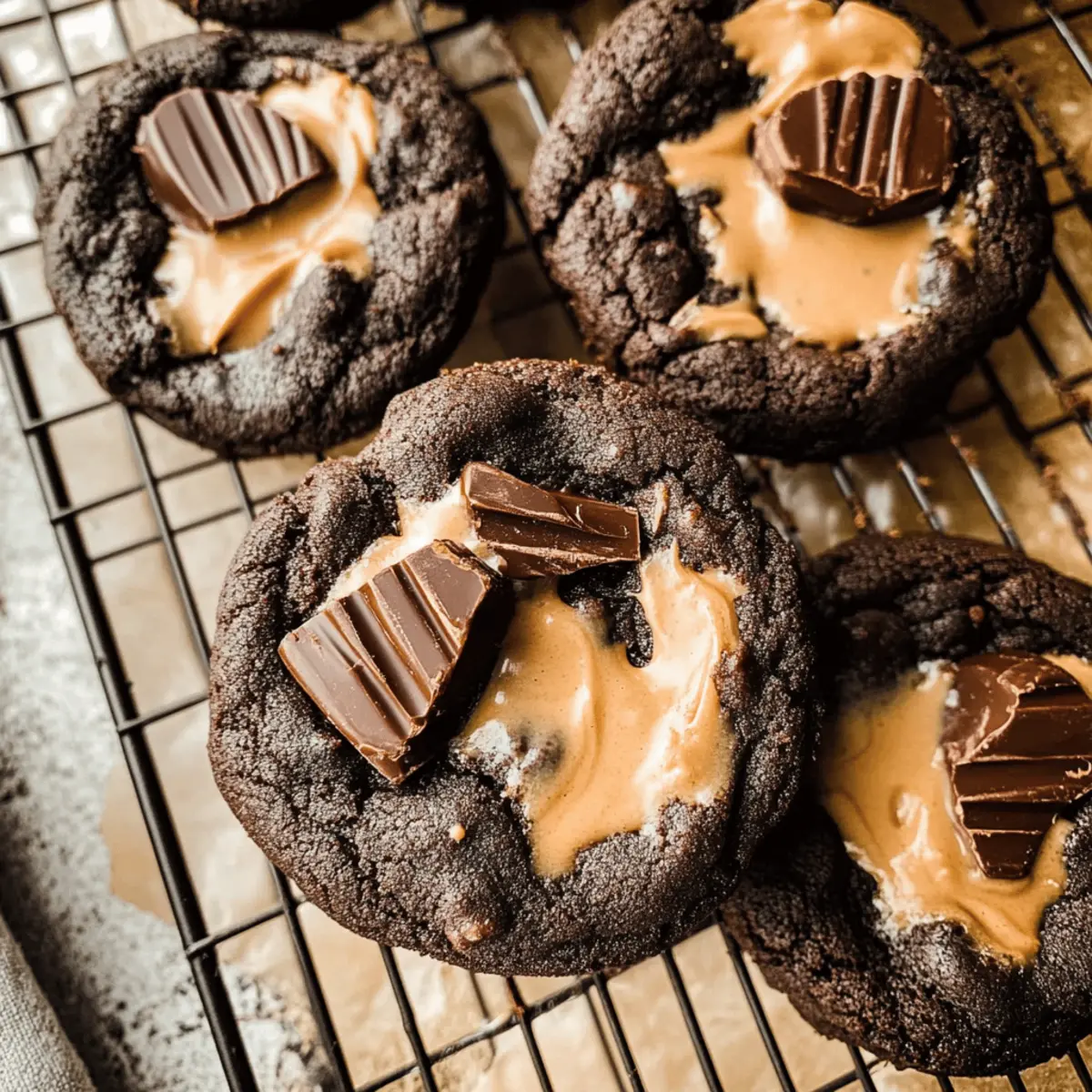 As I stood in my kitchen, the rich, nutty aroma of melting chocolate filled the air, instantly transporting me back to carefree childhood days when cookies were the ultimate treat. Today, we’re diving into the world of Fudgy Chocolate Peanut Butter Cup Cookies—where the classic combo of chocolate and creamy peanut butter takes center stage. Best of all, these cookies come together in under 30 minutes, giving you a delightful indulgence without the long wait. Say goodbye to those late-night cravings and hello to a stress-free baking experience that doesn’t require any chilling time for the dough. Are you ready to experience the magic of these gooey, crunchy delights? Grab your apron; I can’t wait to share this recipe with you!