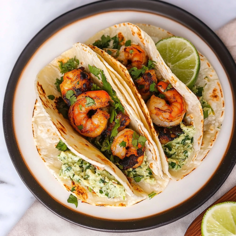 Introduction to Cilantro Lime Shrimp Tacos There’s something magical about the combination of fresh ingredients and bold flavors, especially when it comes to Cilantro Lime Shrimp Tacos. These tacos are not just a meal; they’re a celebration of taste and simplicity. Whether you’re looking for a quick solution after a long day or a dish to impress your friends at a weekend gathering, this recipe has you covered. The zesty lime and vibrant cilantro elevate the shrimp, making every bite a delightful experience. Trust me, once you try these tacos, they’ll become a staple in your kitchen! Why You’ll Love This Cilantro Lime Shrimp Tacos These Cilantro Lime Shrimp Tacos are a game-changer for busy weeknights. They come together in just 26 minutes, making them perfect for those evenings when time is tight. The vibrant flavors will transport your taste buds to a sunny beach, while the fresh ingredients ensure you’re eating something wholesome. Plus, they’re versatile enough to please everyone at the table, from picky eaters to adventurous foodies. What’s not to love? Ingredients for Cilantro Lime Shrimp Tacos Gathering the right ingredients is key to making these Cilantro Lime Shrimp Tacos shine. Here’s what you’ll need: Shrimp: Large, peeled, and deveined shrimp are the stars of this dish. They soak up the marinade beautifully. Olive Oil: A splash of olive oil helps the shrimp cook evenly and adds a rich flavor. Fresh Lime Juice: This is where the zesty magic happens! Freshly squeezed lime juice brightens up the dish. Lime Zest: A little lime zest enhances the citrus flavor, giving your tacos an extra kick. Garlic: Minced garlic adds depth and aroma, making every bite irresistible. Ground Cumin: This warm spice brings a hint of earthiness that complements the shrimp perfectly. Chili Powder: A dash of chili powder adds a mild heat and a beautiful color to the shrimp. Salt and Pepper: Essential for seasoning, these staples help balance the flavors. Corn Tortillas: Small corn tortillas are the perfect vessel for your shrimp and toppings, adding a delightful texture. Shredded Cabbage: This crunchy topping adds freshness and a nice crunch to your tacos. Avocado: Sliced avocado brings creaminess and richness, making the tacos even more satisfying. Fresh Cilantro: Chopped cilantro adds a burst of freshness and a pop of color. Lime Wedges: Serve these on the side for an extra squeeze of lime goodness. For those looking to mix things up, consider adding a dollop of sour cream or a drizzle of spicy mayo on top. If shrimp isn’t your thing, grilled chicken or tofu can be great substitutes. You can find all the exact measurements at the bottom of the article, ready for printing! How to Make Cilantro Lime Shrimp Tacos Creating these Cilantro Lime Shrimp Tacos is a breeze! Follow these simple steps to bring this zesty dish to life. Each step is designed to maximize flavor and ensure your tacos are a hit. Let’s dive in! Step 1: Marinate the Shrimp Start by placing the peeled and deveined shrimp in a large bowl. Add olive oil, fresh lime juice, lime zest, minced garlic, ground cumin, chili powder, salt, and pepper. Toss everything together until the shrimp are well-coated. Marinating is crucial; it allows the shrimp to absorb all those vibrant flavors. Let them sit for 15-20 minutes. This short wait will make a world of difference in taste! Step 2: Cook the Shrimp Heat a large skillet over medium-high heat. Once hot, add the marinated shrimp in a single layer. Cook for 2-3 minutes on each side until they turn pink and opaque. Avoid overcrowding the pan; this ensures even cooking and that perfect texture. If you have leftover marinade, you can add it to the pan for extra flavor. Just make sure it cooks through! Step 3: Warm the Tortillas While the shrimp is cooking, it’s time to warm the corn tortillas. You can do this in a separate skillet over low heat or in the microwave for about 30 seconds. Warming them makes the tortillas pliable, preventing them from cracking when you fill them. A little love goes a long way in ensuring your tacos hold together beautifully! Step 4: Assemble the Tacos Now comes the fun part! Take a warm tortilla and place a few shrimp in the center. Top with a generous handful of shredded cabbage for crunch, a few slices of creamy avocado, and a sprinkle of fresh cilantro. Layering these ingredients not only enhances the flavor but also creates a beautiful presentation. Each bite should be a delightful mix of textures and tastes! Step 5: Serve with Lime To finish, serve your tacos with lime wedges on the side. A squeeze of fresh lime juice over the top brightens the flavors and adds a refreshing zing. It’s the perfect finishing touch that elevates your Cilantro Lime Shrimp Tacos to a whole new level. Enjoy every bite! Tips for Success Don’t skip the marinating step; it’s key for flavor. Use fresh lime juice for the best taste; bottled just won’t cut it. Cook shrimp in batches if necessary to avoid overcrowding. Warm tortillas just before serving to keep them soft. Experiment with toppings like pickled onions or jalapeños for extra zing. Equipment Needed Large Bowl: For marinating shrimp. A mixing bowl works just as well. Skillet: A non-stick skillet is ideal for cooking shrimp. A cast-iron skillet can add extra flavor. Tongs: Perfect for flipping shrimp. A spatula can also do the job. Microwave or Skillet: For warming tortillas. A steamer is another great option. Variations Spicy Shrimp Tacos: Add diced jalapeños or a splash of hot sauce to the marinade for a fiery kick. Fish Tacos: Swap shrimp for flaky white fish like tilapia or cod for a different seafood experience. Vegetarian Option: Replace shrimp with grilled zucchini, bell peppers, or portobello mushrooms for a hearty, meatless taco. Low-Carb Version: Use lettuce wraps instead of corn tortillas for a fresh, low-carb alternative. Herb Variations: Experiment with different herbs like parsley or mint 