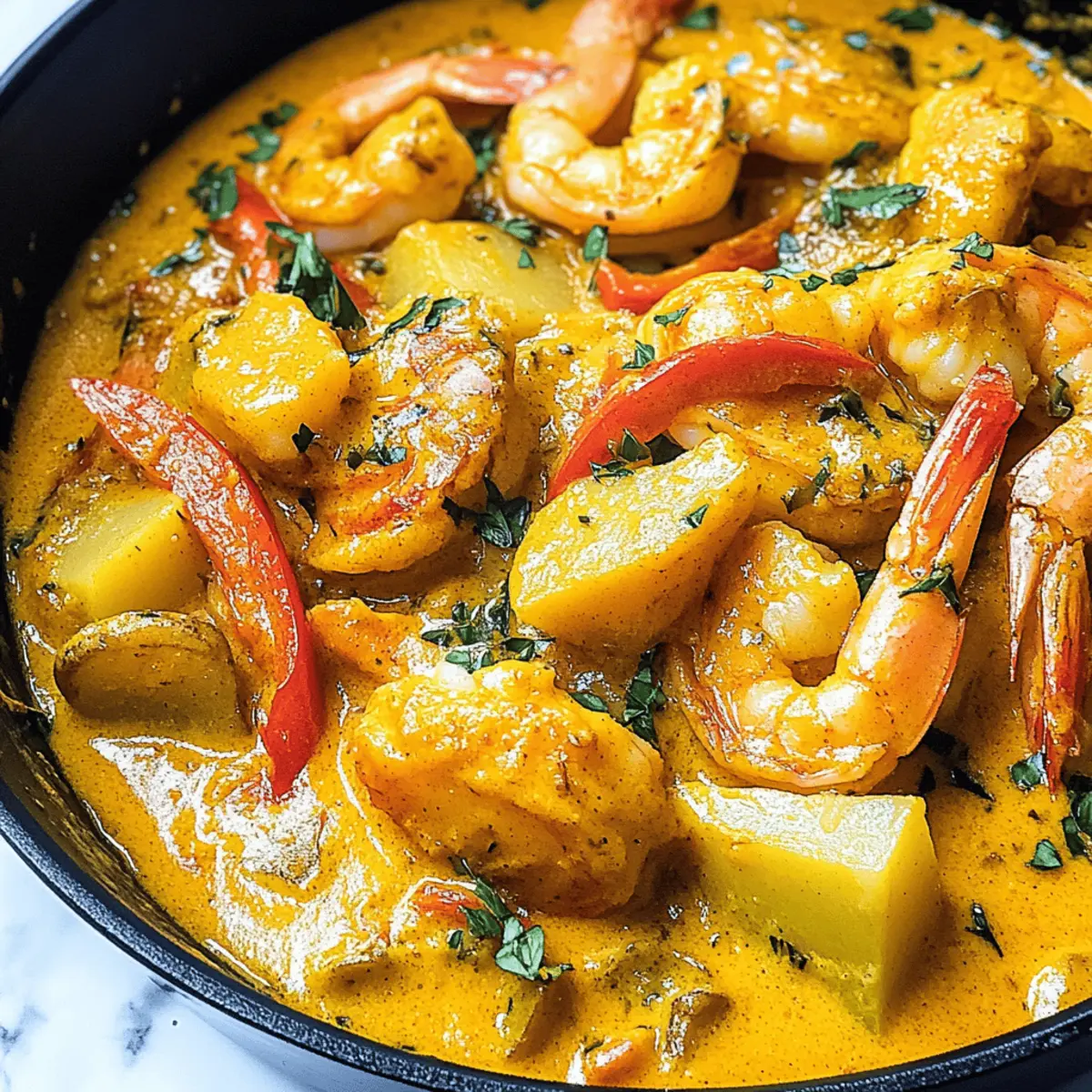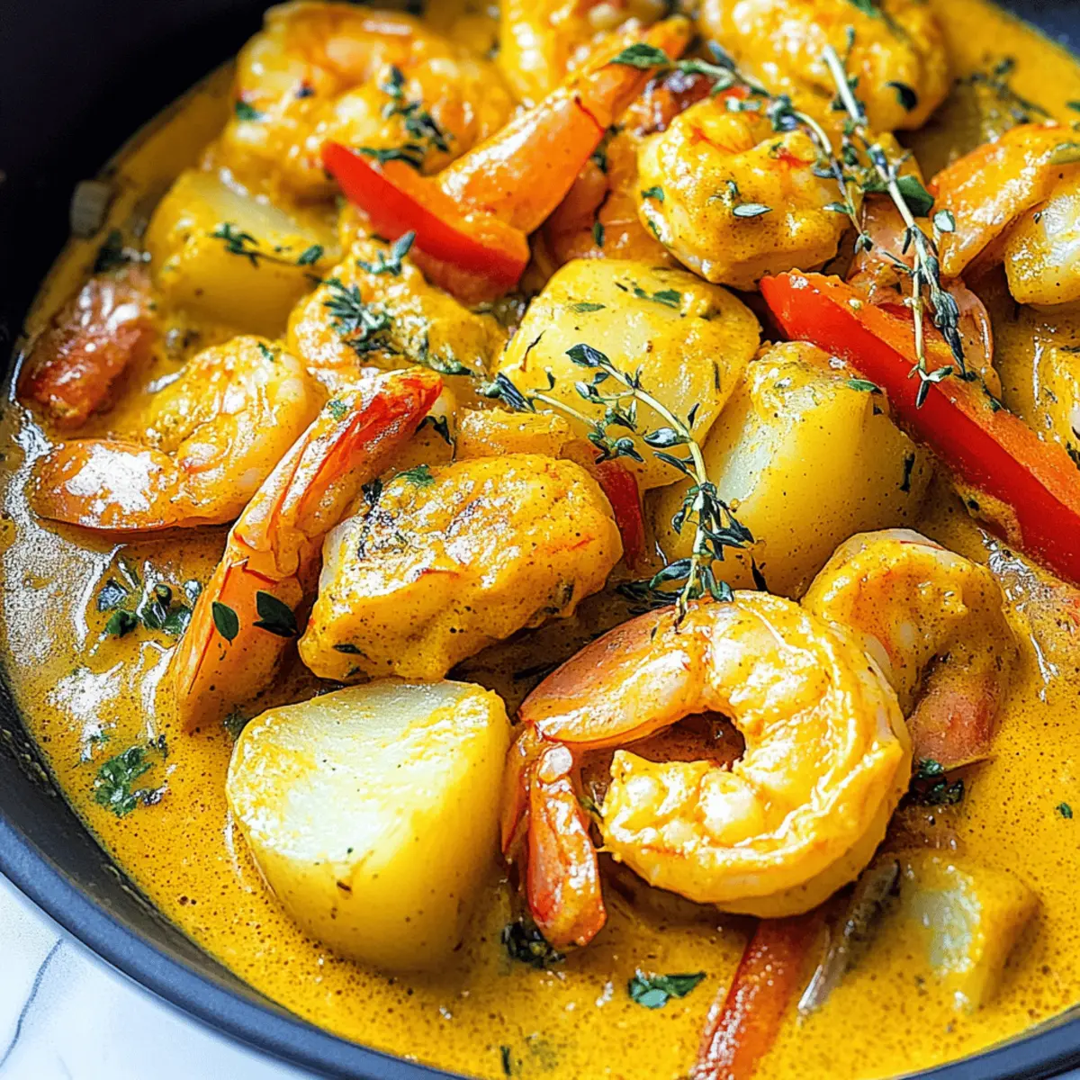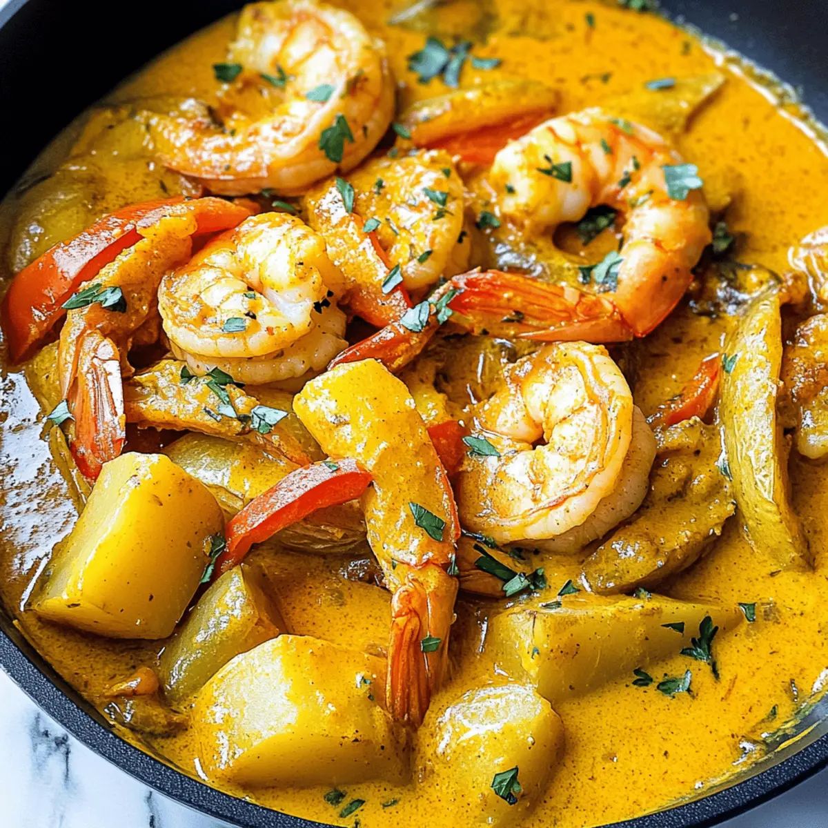 As I stood in my kitchen, the intoxicating aroma of spices wafted through the air, instantly transporting me to the warm shores of the Caribbean. This Easy Coconut Curry Shrimp is a delightful one-pot meal that’s not only quick to prepare but also brings that vibrant island warmth to your dining table. Featuring tender shrimp enveloped in a creamy coconut curry sauce, this dish is perfect for those who crave a scrumptious escape from fast-food monotony. With a generous splash of flavor from fresh ginger and aromatic spices, you can whip up a satisfying dinner in just 30 minutes. Plus, it’s naturally dairy-free, making it a wonderful option for anyone looking to lighten their meal. Ready to dive into a bowl of luscious curry goodness? Let’s get started! Why is Coconut Curry Shrimp a Must-Try? Vibrant flavors burst in every bite of this Easy Coconut Curry Shrimp! The creamy coconut sauce envelops juicy shrimp and tender vegetables, creating a dish that’s quick and satisfying. Perfect for busy weeknights, this one-pot meal saves you time on cleanup. Dairy-free and adaptable, feel free to swap in your favorite veggies or adjust the spice level to suit your taste. Looking for more delightful seafood recipes? Check out these Caesar Shrimp Wraps for another easy, flavorful dish! Coconut Curry Shrimp Ingredients • Dive into this flavorsome dish with these essential ingredients! For the Shrimp Shrimp – Use large or jumbo shrimp for the best texture; ensure they are peeled and deveined. For the Base EVOO (Extra Virgin Olive Oil) – Sauté with this for rich flavor; can substitute with grapeseed, vegetable, or canola oil. Yellow Onion – Adds natural sweetness; slice for texture or use whole for a visual treat. Bell Peppers – Provide a lovely crunch and sweetness; mix colors for a splash of vibrancy. For the Aromatics Garlic – Fresh minced garlic is encouraged to heighten flavors in your coconut curry shrimp. Fresh Ginger – Adds a welcoming brightness; fresh is ideal, but ground ginger is a suitable substitute. For Heartiness and Flavor Potatoes – Adds heartiness; use golden or Yukon and add towards the end to maintain shape. Curry Powder – Essential for that bold flavor; Jamaican curry powder offers an authentic kick, or use Thai curry paste for a twist. Ground Cumin – Introduces warmth; whole seeds can be toasted for a richer flavor profile. Cayenne Pepper – Provides a delightful heat; adjust to your spice preference or swap for fresh scotch bonnet peppers. For the Sauce Coconut Milk – Full-fat coconut milk creates a rich, creamy sauce that binds the dish together. Stock or Water – Choose seafood or chicken stock for enhanced flavor; adjust consistency as desired. Salt & Ground Black Pepper – Season to taste; these full-bodied basics enhance every element of the dish. For Garnishing Fresh Thyme Sprigs – This herb gives an authentic Caribbean touch; fresh is preferred, though dried thyme (1 tsp) works too. Fresh Cilantro – Provides a burst of freshness at the finish; parsley is also a great alternative for garnish. With this Coconut Curry Shrimp ingredient list, you’re ready to create a vibrant meal that whisks you away to tropical shores with each delightful bite! Step‑by‑Step Instructions for Coconut Curry Shrimp Step 1: Season Shrimp In a bowl, combine the peeled and deveined shrimp with a sprinkle of salt, ground black pepper, and a dash of curry powder. Mix well to coat the shrimp evenly. Cover the bowl and refrigerate for about 15 minutes to allow the flavors to meld while you prepare the other ingredients. Step 2: Sauté Vegetables In a large pot over medium heat, add 2 tablespoons of extra virgin olive oil. Once heated, toss in the sliced yellow onion and bell peppers. Sauté for 5-8 minutes until the vegetables are tender and the onion is translucent, stirring frequently to prevent sticking and to foster a delightful caramelization. Step 3: Add Aromatics Stir in 3 cloves of minced garlic and 1 tablespoon of freshly grated ginger to the pot with the sautéed vegetables. Cook for about 2 minutes until fragrant, stirring constantly to ensure that the garlic doesn’t burn. The aroma should fill your kitchen, signaling that it’s time for the next flavorful step. Step 4: Fry Spices Now, add the remaining curry powder, 1 teaspoon of ground cumin, and a pinch of cayenne pepper to the pot. Stir well and let the spices toast for 2-3 minutes, allowing their essential oils to release. This step deepens the flavor profile of your Coconut Curry Shrimp. Step 5: Incorporate Liquids Pour in 1 can of full-fat coconut milk and 1 cup of your choice of seafood or chicken stock. Add a few fresh thyme sprigs for an infusion of herbal freshness. Bring the mixture to a gentle boil, then add diced potatoes and cover the pot. Let it simmer for 5-7 minutes until the potatoes are fork-tender. Step 6: Final Seasoning and Shrimp Once the potatoes are tender, taste the sauce and adjust salt and pepper as needed for seasoning. Then, gently fold in the seasoned shrimp that have been marinating. Cover the pot and cook for an additional 5 minutes or until the shrimp turn pink and opaque, perfectly cooked in that luscious curry sauce. Step 7: Serve After cooking, remove the pot from heat and garnish your Coconut Curry Shrimp with freshly chopped cilantro for a burst of freshness. Serve hot over fluffy rice or quinoa to soak up that delightful sauce, inviting your family to dig in as the vibrant colors and mouthwatering aroma entice them to the table. Coconut Curry Shrimp Variations Feel free to mix and match to create your perfect version of this Coconut Curry Shrimp! Vegetable Upgrade: Incorporate zucchini or carrots to add crunch and sweetness; these veggies absorb the delightful curry flavors beautifully. Curry Twist: Experiment with Thai or Indian curry powders to bring new tastes; each offers a unique spice profile that can transport your dish to exciting culinary realms. D
