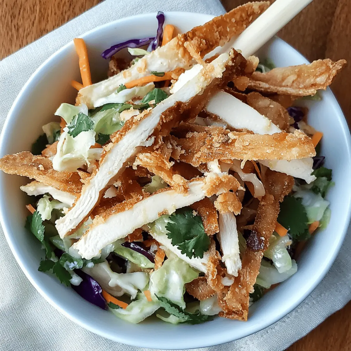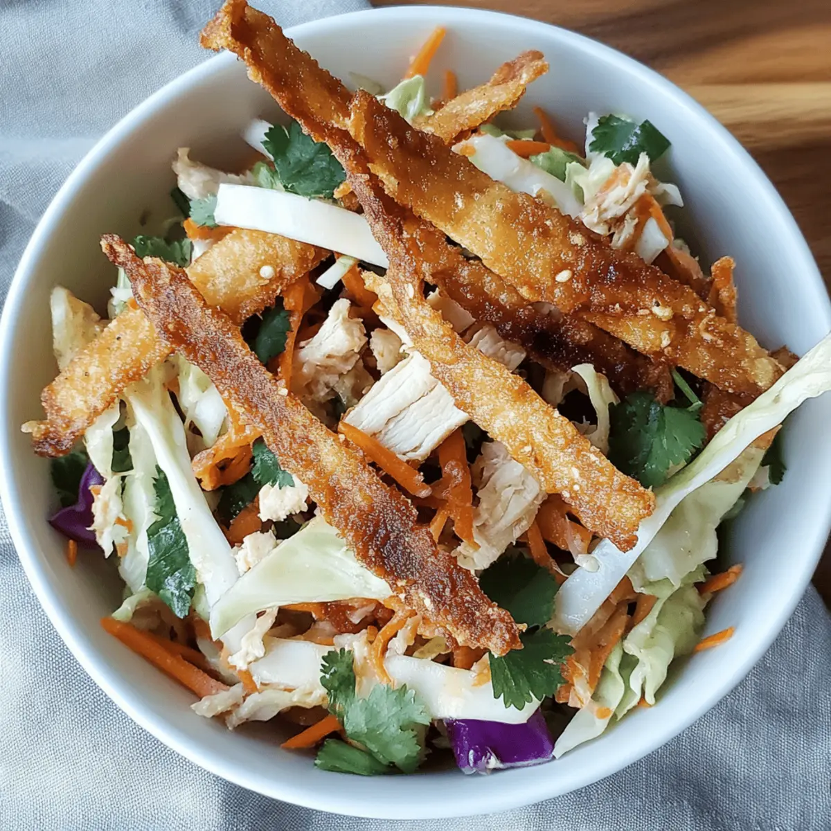 Enjoy crafting this crispy Chinese Chicken Salad! Don’t forget to savor the satisfying crunch of those homemade wonton strips—it’s a game changer!