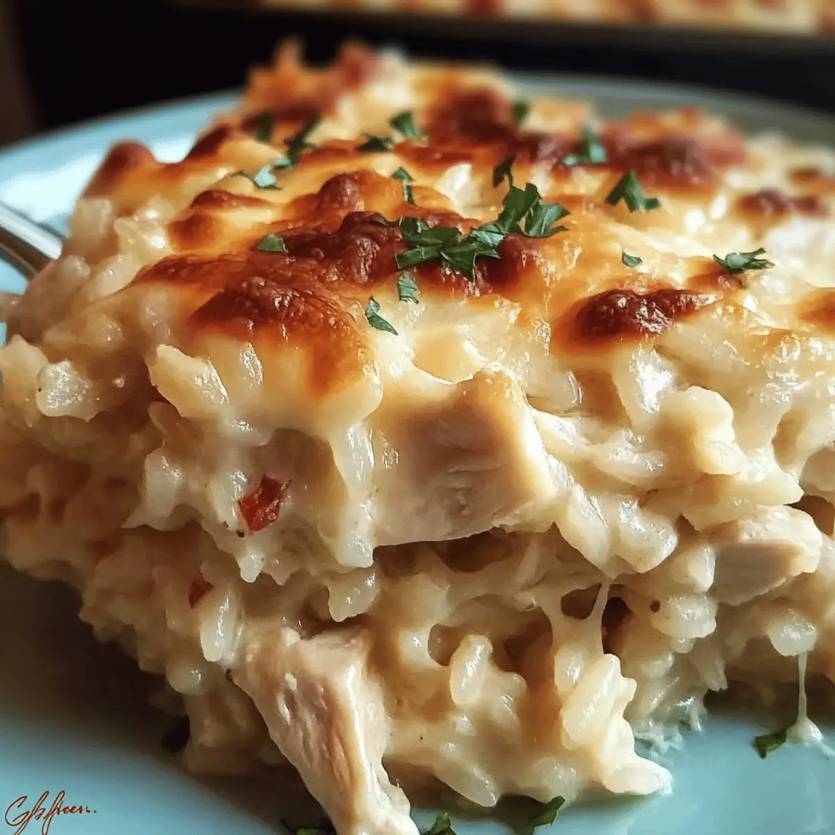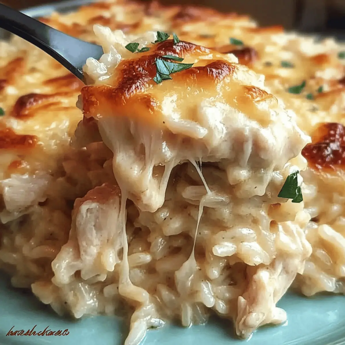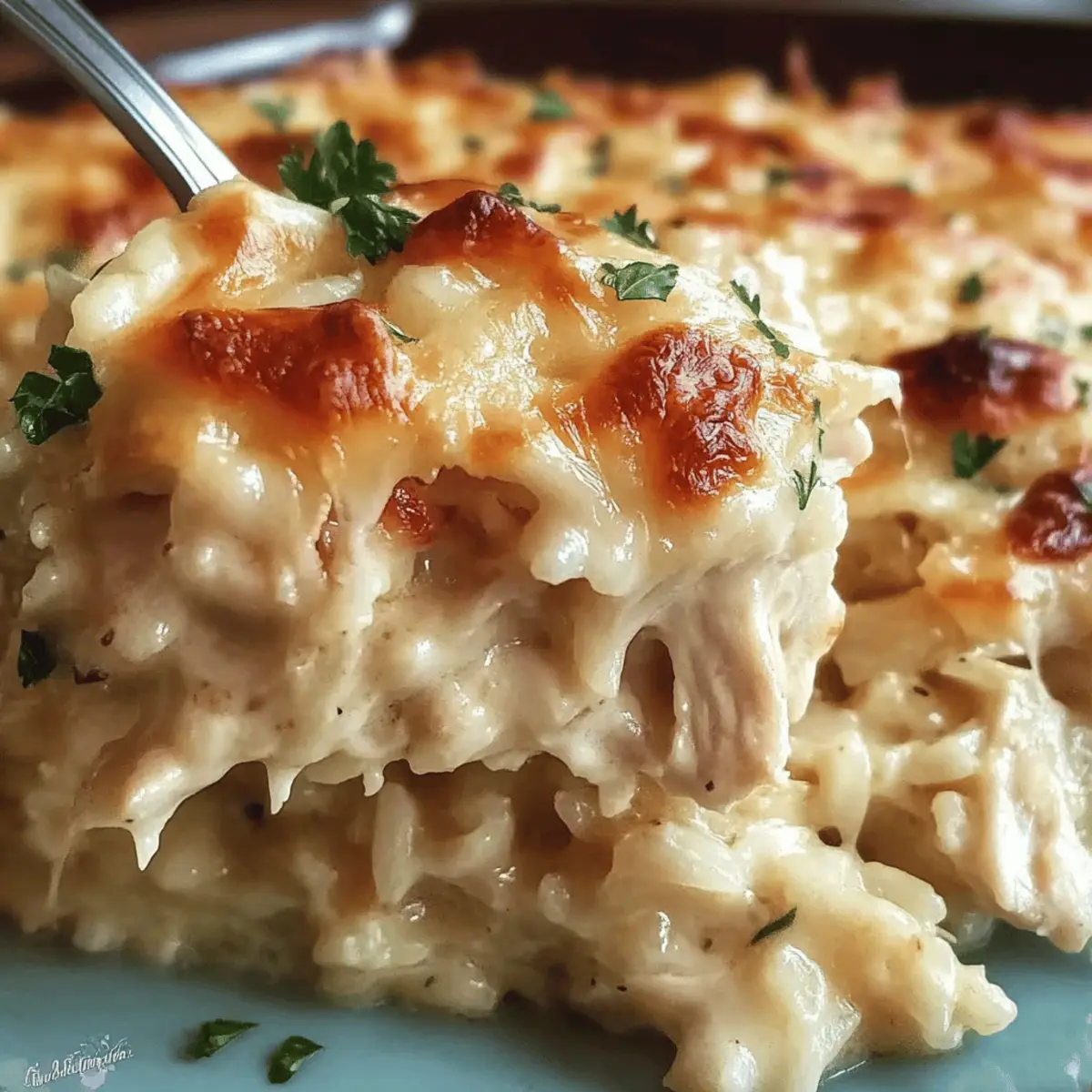 As the busy evening rush unfolds, the last thing I want to worry about is a complicated dinner. That’s when I turn to my Dump-and-Bake Chicken Alfredo Rice Casserole, a recipe that’s as effortless as it is delicious. With tender morsels of chicken, cheesy Alfredo sauce, and fluffy rice, this gluten-free gem whips up in no time, making it a lifesaver for hectic weeknights. Plus, it’s a true crowd-pleaser, proving that comfort food can be both simple and satisfying. Whether you’re feeding an army or just craving something hearty, this casserole has you covered. Curious how easily it all comes together? Let’s dive into the delicious details! Why Is This Casserole So Amazing? Effortless Preparation: This Dump-and-Bake Chicken Alfredo Rice Casserole takes minimal time to assemble, freeing you up for other evening tasks. Comfort Food Heaven: The creamy Alfredo sauce combined with tender chicken and fluffy rice creates a heartwarming meal everyone will love. Gluten-Free Delight: Perfect for those with dietary restrictions, this dish offers a gluten-free experience without sacrificing flavor. Customizable Options: Feel free to mix in your favorite veggies or switch up the cheeses to cater to your family’s preferences. Want another quickly prepared dish? Check out my Chicken Hashbrown Casserole for another time-saver! Crowd-Pleasing Appeal: This casserole is great for large gatherings, ensuring even the pickiest eaters will leave satisfied. Dump-and-Bake Chicken Alfredo Rice Casserole Ingredients For the Casserole Shredded Rotisserie Chicken – Provides protein and flavor; you can cook and shred your own chicken if preferred. Uncooked White Rice – Acts as the base for this comforting dish; brown rice can be used but may require extra liquid and cooking time. Chicken Broth – Enhances flavor and moisture during baking; substitute with vegetable broth for a vegetarian option. Alfredo Sauce – Adds creaminess and richness; consider a homemade white sauce for a lighter twist. Garlic Powder – Provides savory depth; fresh garlic can also be used for a more robust flavor. Italian Seasoning – Adds herby flavor; dried oregano or basil are good substitutes if needed. Salt and Pepper – Essential for seasoning to taste. Frozen Peas and Carrots (optional) – Enhance nutrition and color; feel free to add fresh veggies but adjust cooking time accordingly. Mozzarella Cheese – Creates a gooey topping; other cheese varieties like cheddar can also work well. Fresh Parsley (for garnish, optional) – Adds freshness and a pop of color to the dish. This Dump-and-Bake Chicken Alfredo Rice Casserole is not just easy to prepare, but also a delightful meal that brings comfort to your table! Step‑by‑Step Instructions for Dump-and-Bake Chicken Alfredo Rice Casserole Step 1: Preheat the Oven Start by preheating your oven to 375°F (190°C). Ensuring your oven is fully preheated is essential, as this will help the rice cook properly and absorb all the flavors of the casserole. While the oven warms up, gather your ingredients to make the assembly process smoother. Step 2: Combine Ingredients In a large mixing bowl, combine shredded rotisserie chicken, uncooked white rice, chicken broth, and Alfredo sauce. Add in garlic powder, Italian seasoning, salt, and pepper. Stir everything together until well blended. The mixture should look creamy, with the rice evenly coated—this is the base for your delicious Dump-and-Bake Chicken Alfredo Rice Casserole! Step 3: Add Vegetables (Optional) If you’d like to enhance the dish’s nutrition and color, stir in some frozen peas and carrots at this point. They add a delightful crunch and freshness to the casserole. Mix them thoroughly with the chicken and rice combination, ensuring they are evenly distributed throughout the mixture. Step 4: Transfer to Baking Dish With your mixture ready, transfer it to a greased 9×13 inch baking dish. Smooth the top evenly with a spatula to ensure even cooking. This step is important as it allows the casserole to bake uniformly, so every bite is just as delicious as the last! Step 5: Cover and Bake Cover the dish tightly with aluminum foil to retain moisture while baking. Place it in your preheated oven and bake for 45 minutes. This step allows the rice to cook through and absorb the chicken broth, resulting in a perfectly creamy texture for your casserole. Step 6: Add Cheese Topping After the initial baking time, carefully remove the foil and sprinkle mozzarella cheese generously over the top of the casserole. The cheese will melt beautifully, creating a gooey, inviting layer that enhances the overall flavor of your Dump-and-Bake Chicken Alfredo Rice Casserole. Step 7: Final Bake Return the casserole to the oven and bake uncovered for an additional 10-15 minutes. Keep an eye on it; you’ll know it’s done when the cheese is melted and bubbly, with a lovely golden color on top. This step adds that extra comfort foodie delight to your dish! Step 8: Garnish and Serve Once baked, take your casserole out of the oven and allow it to cool slightly. For a fresh touch, garnish with chopped fresh parsley right before serving. This final step not only adds visual appeal but also a pop of flavor to your comforting Dump-and-Bake Chicken Alfredo Rice Casserole. Serve hot, and watch as your family enjoys every bite! Storage Tips for Dump-and-Bake Chicken Alfredo Rice Casserole Fridge: Store leftovers in an airtight container in the fridge for up to 3 days. Reheat individual portions in the microwave or warm in the oven at 350°F (175°C) until heated through. Freezer: You can freeze the casserole before baking for up to 3 months. Cover tightly with foil or plastic wrap. Thaw in the refrigerator overnight before baking as directed. Make-Ahead: Prepare the casserole up to 24 hours in advance and keep it covered in the refrigerator until you’re ready to bake. This is perfect for those busy weeknights! Reheating: When reheating, add a spl