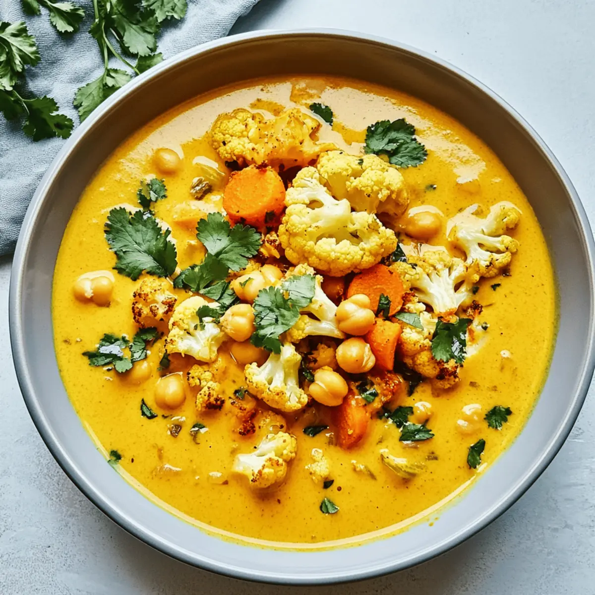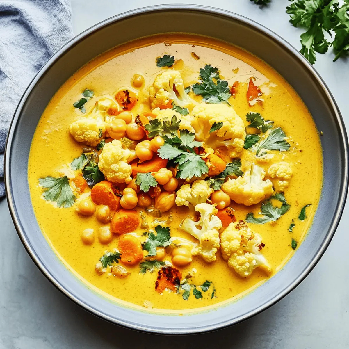 As I stirred the vibrant yellow pot on my stove, the earthy aroma of turmeric and the zing of fresh ginger danced in the air, transforming my kitchen into a cozy oasis. This Golden Soup is my secret weapon for those chilly evenings when nothing but a warm hug in a bowl will do. Packed with wholesome ingredients like creamy cauliflower and protein-rich chickpeas, this vegan-friendly and gluten-free delight is not just a comfort food—it’s a health boost for your digestion and skin! Plus, its quick prep means you can whip it up on a busy weeknight without breaking a sweat. Are you ready to discover how to create your own bowl of this golden goodness? Why is Golden Soup so Special? Comforting Warmth: This soup is your go-to for cozy nights, wrapping you in a gentle hug of flavors. Health Boosting Ingredients: Featuring turmeric and ginger, it promotes digestion and a glowing complexion. Easy Preparation: With a quick 30-minute prep time, you’ll have a delicious meal on the table in no time. Versatile Base: Feel free to customize it with greens or grains, making it perfect for any palate. Want more ideas? Check out our variation ideas for added inspiration! Crowd-Pleasing Flavor: Its rich, creamy texture and vibrant color make it a visual and flavorful delight that will impress family and friends. Golden Soup Ingredients • Discover the essential components of this creamy delight! For the Base Chickpeas – Adds protein and a hearty texture; use canned chickpeas for convenience or cook your own from dried. Cauliflower – Provides a creamy body when blended; substitute with broccoli for a different flavor profile. Carrots – Required for natural sweetness and color; any variety of carrot is acceptable. Yellow Onion – Base flavor for the soup; shallots can be used as an alternative. Fresh Ginger – Provides a warm, zesty flavor; ground ginger is a substitute in a pinch. Garlic Cloves – Essential for aromatic depth; fresh garlic is best; garlic powder can be a last-minute substitute. For the Flavor Boost Yellow Curry Powder – Gives warmth and depth of flavor; can be swapped with red curry powder for a spicier kick. Ground Turmeric – Imparts color and health benefits (anti-inflammatory); fresh turmeric can be used as a substitute. Sea Salt – Enhances overall flavor; adjust based on dietary needs. Cayenne Pepper (optional) – Adds heat; omit if you prefer a milder soup. For the Creaminess Extra-Virgin Olive Oil – For roasting the vegetables, infusing flavor and beneficial fats; can be replaced with avocado oil. Full-Fat Coconut Milk – Adds creaminess and richness; substitute with cashew cream for a nut-based option. For the Finishing Touch Vegetable or Chicken Stock – Base liquid for the soup; homemade stock will elevate flavor but store-bought is acceptable. Sugar – Balances flavors; use agave syrup for a vegan-friendly option. Fresh Lemon Juice – Brightens the soup’s flavor; lime juice serves as a tasty alternative. Fresh Cilantro – For garnish, adding flavor and freshness; parsley can substitute for a different herb taste. Step‑by‑Step Instructions for Golden Soup Step 1: Preheat Oven Begin by preheating your oven to 425°F (220°C). This temperature will allow the vegetables to roast perfectly, enhancing their flavors as they caramelize. Make sure your oven is fully heated before moving on to the next steps for the best results. Step 2: Prepare Vegetables While the oven heats, pat the chickpeas dry with a paper towel and chop your cauliflower into bite-sized florets. Slice the carrots into rounds and combine all these vegetables on a large sheet pan. Drizzle with extra-virgin olive oil and toss with yellow curry powder, ground turmeric, and sea salt for a flavorful coating. Step 3: Roast Vegetables Once the oven is ready, place the sheet pan in and roast the vegetables for about 20 minutes. You want them to be tender and slightly browned, which will add a delightful depth to your Golden Soup. Keep an eye on them to ensure they don’t overcook. Step 4: Sauté Aromatics In a large stockpot, heat a tablespoon of olive oil over medium heat. Add diced yellow onion and sauté until softened and translucent, about 5 minutes. Next, stir in the minced fresh ginger and garlic, cooking until fragrant, which should take an additional 1-2 minutes. This step builds the aromatic base for your Golden Soup. Step 5: Combine Ingredients To the sautéed aromatics, add the remaining spices, vegetable stock, full-fat coconut milk, sugar, and fresh lemon juice. Stir well to combine everything and bring it to a gentle simmer. The mixture should become a rich and fragrant base for your soup, setting the stage for blending. Step 6: Blend the Soup After allowing the soup to simmer for about 5 minutes, carefully incorporate half of the roasted vegetables and chickpeas into the pot. Using an immersion blender, blend until the soup is smooth and creamy. If you prefer a countertop blender, let the soup cool slightly before transferring it, ensuring safety against splatter. Step 7: Finish Soup Finally, stir the remaining roasted vegetables into the blended Golden Soup and heat it gently for a couple of minutes. This step adds texture to your soup, creating a lovely contrast with the creamy base. Serve the warm soup hot, garnished with fresh cilantro for a vibrant touch. Golden Soup: Endless Possibilities Feel free to get creative with this Golden Soup and make it truly yours with exciting twists and swaps! Greens Boost: Add kale or spinach for extra nutrients and vibrant color. Grains Galore: Incorporate quinoa or rice into the soup for added heartiness and texture. Creamy Cashew: Swap full-fat coconut milk with cashew cream for a nut-based alternative that’s just as creamy. Spicy Kick: Replace yellow curry powder with red curry powder if you crave a spicier flavor. Lentil Love: Toss in cooked red lentils for an added boost of protein and a unique texture. Zesty Citrus: Instead of fr