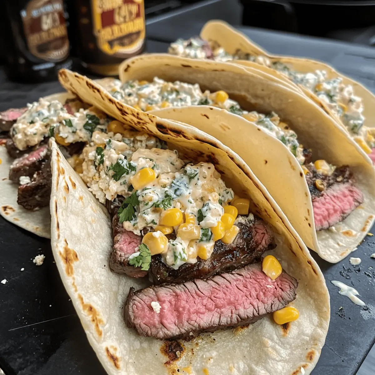 With the sizzling sound of grill marks and a waft of smoky goodness, it’s time to elevate your taco night! These Grilled Steak Elote Tacos are packed with juicy ribeye steak and a creamy corn salsa that will make your taste buds do a happy dance. Perfect for a summer cookout, these delicious tacos offer a delectable combination of spicy and sweet—customizable to your heat preference with the addition of jalapeños. Not only are they a crowd-pleaser, but they’re also quick to prepare, making weeknight dinners a breeze. Are you ready to impress your friends and family with this festive twist on a classic? Dive into the full recipe below! Why Will You Love Grilled Steak Tacos? Vibrant Flavors: The combination of juicy ribeye steak and creamy elote salsa creates a taste explosion that brings summer to your plate. Quick & Easy: With simple ingredients and straightforward steps, these tacos can be on your table in under 30 minutes, perfect for those busy weeknights. Customizable Heat: Add jalapeños for a spicy kick, or leave them out for a milder flavor—these tacos cater to everyone’s preferences! Perfect for Gatherings: Whether it’s a summer barbecue or a casual weeknight dinner, these tacos are sure to delight your guests, making you the star of the cookout! Don’t miss out on other exciting dishes like our Bbq Chicken Grilled Cheese to elevate your menu! Authentic Taste: Infused with traditional elote flavors, every bite transports you to a vibrant street market in Mexico—truly a culinary adventure. Easy Cleanup: With minimal dishes required, you can enjoy your meal without the hassle of complicated cleanup. Grilled Steak Elote Tacos Ingredients For the Steak Ribeye Steaks – The star ingredient, known for its juiciness and flavor; sirloin is a great budget-friendly substitute. Salt and Pepper – Essential seasonings that enhance the steak’s natural flavor; adjust to your taste preference. For the Elote Salsa Ears of Corn – Provides sweetness and texture; if fresh corn isn’t available, opt for frozen. Mayonnaise – Adds creaminess to the elote; try Greek yogurt for a lighter alternative. Sour Cream – Infuses tanginess; you can substitute with crème fraîche or extra yogurt if desired. Chopped Cilantro – Offers fresh herbal notes; feel free to omit if you’re not a fan. Cotija Cheese – Delivers a crunchy texture and saltiness; feta cheese makes a suitable substitute. Lime Juice – Brings brightness and acidity; lemon juice can replace it for a different citrus flavor. Lime Zest (optional) – Adds extra zing; consider skipping it for simplicity. For the Tacos Small Tortillas (flour or corn) – Serves as the taco base; gluten-free options are available if needed. Jalapeño (optional) – Introduces a spicy kick; omit if you prefer a milder flavor. Feel free to customize these Grilled Steak Elote Tacos to suit your taste, whether you’re looking to spice things up or keep it simple! Step‑by‑Step Instructions for Grilled Steak Elote Tacos Step 1: Preheat the Grill and Prepare the Corn Start by preheating your grill to medium-high heat, aiming for around 375°F (190°C). While the grill warms up, husk the ears of corn, ensuring they are clean and free of silk. You want the corn to be nicely exposed for that beautiful char. This initial preparation sets the groundwork for your flavorful Grilled Steak Elote Tacos. Step 2: Grill the Corn Once your grill is hot, place the corn directly on the grate and grill for 10-12 minutes, turning occasionally. Look for a charred appearance, which indicates the corn is beautifully roasted. Once done, remove the corn from the grill and let it cool for a few minutes until it’s safe to handle. This will enhance the natural sweetness of the corn, making it a delicious addition to the tacos. Step 3: Cut and Mix the Elote Ingredients Once the corn has cooled, carefully cut the kernels off the cob using a sharp knife, taking care not to leave any behind. In a mixing bowl, combine the fresh corn kernels with mayonnaise, sour cream, chopped cilantro, cotija cheese, lime juice, and zest if using. Stir everything gently until well mixed, ensuring a creamy, textured elote salsa that will elevate your Grilled Steak Elote Tacos. Step 4: Season and Grill the Steaks While you mix the elote, season both sides of your ribeye steaks generously with salt and pepper. Place the steaks on the grill and cook for 4-5 minutes per side for medium-rare, adjusting time for your desired doneness. Look for a nice sear and feel free to use a meat thermometer; 135°F (57°C) is ideal for medium-rare. Once grilled to perfection, let the steaks rest for 5 minutes to help retain their juices. Step 5: Toast the Tortillas During the steak resting period, take some small tortillas and place them directly on the grill for about 1 minute on each side. Keep an eye on them—you’re looking for a warm, slightly charred tortilla that’s flexible enough to hold the taco filling without breaking. This step enhances flavor and texture, making your tacos truly enjoyable. Step 6: Assemble the Tacos Now it’s time to build your Grilled Steak Elote Tacos! Thinly slice the rested ribeye against the grain and lay a few pieces on each warm tortilla. Top it generously with the creamy elote salsa you prepared earlier. The combination of juicy steak and creamy corn will create an irresistible bite that brings your tacos to life. Step 7: Add Jalapeños (Optional) For a little extra kick, slice fresh jalapeños and sprinkle them on top of each taco. This optional step will add spice and amplify the flavor profile of your tacos, catering to those who enjoy a bit more heat. Customize each taco to your taste for the perfect final touch. Step 8: Serve and Enjoy Present your Grilled Steak Elote Tacos on a platter and, if desired, garnish with lime wedges for an extra burst of tang. The vibrant colors and enticing aromas will captivate your family and guests! Enjoy these flavorful 