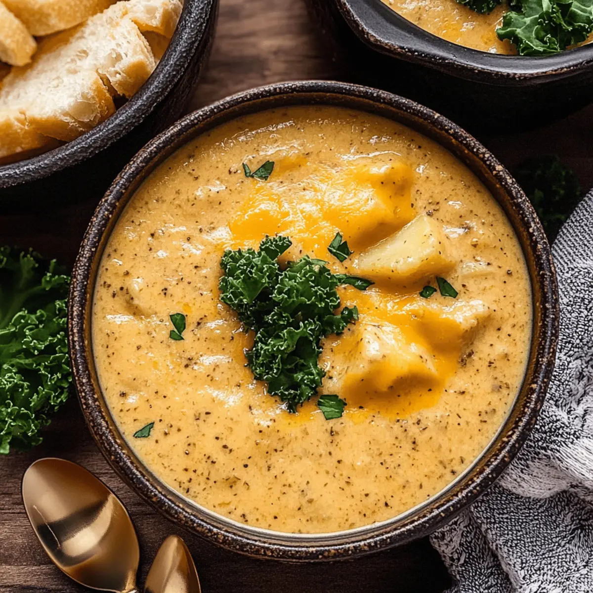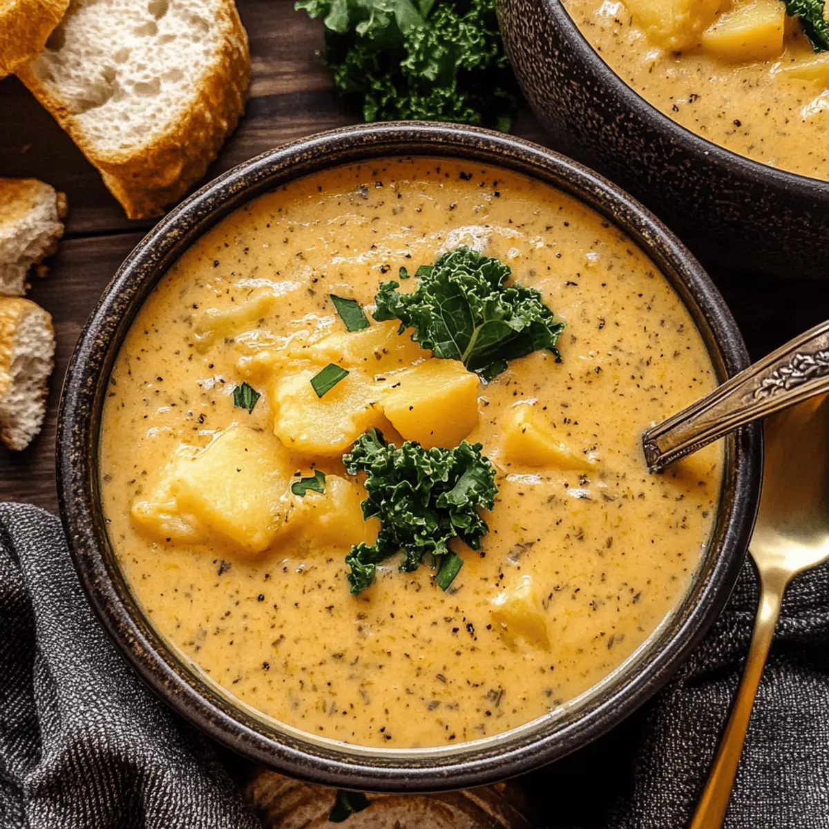 As the steam rises from the pot, you’re instantly enveloped in the warm, inviting aroma of my Hearty Cheddar Garlic Herb Potato Soup. It’s not just a soup; it’s a comforting hug in a bowl that wraps you in rich, savory goodness perfect for those chilly evenings. With the delightful flexibility of both vegan and slow cooker options, this recipe is designed to fit seamlessly into your busy life while satisfying all your cozy cravings. Plus, it’s gluten-free when you opt for the right vegetable stock, ensuring that everyone at your table can indulge without worry. Are you ready to turn your kitchen into a haven of warmth and flavor? Let’s dive into this delicious journey! Why is This Potato Soup So Irresistible? Creamy Comfort: Each spoonful of this Hearty Cheddar Garlic Herb Potato Soup delivers an indulgent, velvety texture that warms the soul. Flexible Satisfying Options: Whether you prefer a slow cooker method or a vegan twist, this recipe adapts to your needs, making it a go-to for busy weeknights. Bold Flavor: With the perfect blend of garlic and smoked paprika, this soup brings a robust depth of flavor, leaving your taste buds dancing after every bite. Health-Conscious Choice: It’s gluten-free and can be tailored dairy-free, ensuring all dietary preferences are happily catered for. Pair it with a side of Crispy Garlic Parmesan Chicken Bites for a complete meal! Crowd-Pleaser: Perfect for family gatherings or cozy dinners with friends, this soup isn’t just a meal; it’s a shared experience that brings everyone together, just like a bowl of Hearty Pork Stew would! Hearty Cheddar Garlic Herb Potato Soup Ingredients Creating a blissfully warming Hearty Cheddar Garlic Herb Potato Soup starts with these simple yet flavorful ingredients! For the Soup Base Medium Organic Russet Potatoes – Provides a creamy base for your soup; Yukon potatoes work well as a tasty alternative. Extra Virgin Olive Oil – Perfect for sautéing, adding a touch of healthy fats; any neutral oil can substitute if needed. Unsalted Butter – Enhances flavor richness; swap for vegan butter if you’re aiming for a dairy-free soup. Red Onion – Infuses a sweet and savory depth; feel free to use yellow or white onions if that’s what you have. Garlic Cloves – The star of the show, providing essential flavor; adjust the amount to your preference! Organic Vegetable Stock/Broth – This is the creation’s soul, formulating the rich base; ensure it’s gluten-free if necessary. For the Flavor Boost On Everything All-Purpose Blend – Adds zest to your soup; a homemade mix with salt, pepper, and herbs can be a great alternative. Smoked Paprika – Brings a smoky depth; regular paprika can be used for a different taste profile. White Cooking Wine – Adds a touch of acidity to brighten up the flavors; substitute extra vegetable stock if you prefer not to use wine. For the Creaminess Organic Heavy Cream – This makes the soup luxuriously creamy; you can swap it for full-fat coconut milk for a vegan twist. Freshly-Grated Sharp Cheddar Cheese – Introduces irresistible richness; use nutritional yeast or dairy-free cheese for a vegan option. Optional Nutrition Booster Kale – Adding nutrition and texture; you can omit or replace with your favorite leafy greens if desired. These carefully selected ingredients come together to create a delightful Hearty Cheddar Garlic Herb Potato Soup that’s sure to warm hearts and homes alike! Step‑by‑Step Instructions for Hearty Cheddar Garlic Herb Potato Soup Step 1: Sauté Aromatics In a Dutch oven, heat 2 tablespoons of extra virgin olive oil and 2 tablespoons of unsalted butter over medium-high heat. Once the butter has melted and begins to bubble, add 1 diced red onion and 3 minced garlic cloves. Sauté for 1-2 minutes until the onions become translucent and fragrant, creating a cozy aroma that signals it’s time to build flavor. Step 2: Add Spices and Potatoes Stir in 1 teaspoon of smoked paprika and 1 tablespoon of the On Everything All-Purpose Blend, mixing well. Next, add 4 medium organic russet potatoes, peeled and cubed, stirring until they are coated with the aromatic mixture. This combination will provide a rich base for your Hearty Cheddar Garlic Herb Potato Soup as it melds flavors in the pot. Step 3: Pour in Vegetable Stock Carefully pour in 6 cups of organic vegetable stock and bring the mixture to a gentle boil over high heat. Let the soup bubble for 1-2 minutes to ensure all ingredients are well incorporated. After boiling, reduce the heat to low and let it simmer uncovered for 15-20 minutes, or until the potatoes are fork-tender and easily break apart, producing a comforting texture. Step 4: Thicken the Soup (Optional) For a thicker soup, allow the potatoes to simmer for an additional 10 minutes until they start breaking down, which naturally enhances the soup’s creaminess. Alternatively, mix a tablespoon of flour with water and whisk it in to create a smooth consistency. This will help achieve that velvety, inviting texture everyone loves in a comforting bowl of Hearty Cheddar Garlic Herb Potato Soup. Step 5: Incorporate Cream and Cheese Stir in 1 cup of organic heavy cream and 1 cup of chopped kale (if using), mixing them well into the soup. Then, pour in 1/2 cup of white cooking wine, allowing the colors and flavors to meld beautifully. Gradually mix in 1 cup of freshly-grated sharp cheddar cheese, stirring until it melts into a rich, creamy consistency that makes this soup irresistible. Step 6: Serve and Garnish Once the cheese has melted and the soup is warmed through, ladle the Hearty Cheddar Garlic Herb Potato Soup into bowls. Garnish with freshly chopped parsley or sliced green onions for an extra burst of flavor and color. Serve immediately, perhaps with a side of crusty bread, inviting everyone to enjoy a hearty meal that’s perfect for sharing on chilly evenings. What to Serve with Hearty Cheddar Garlic Herb Potato Soup Serve up a c