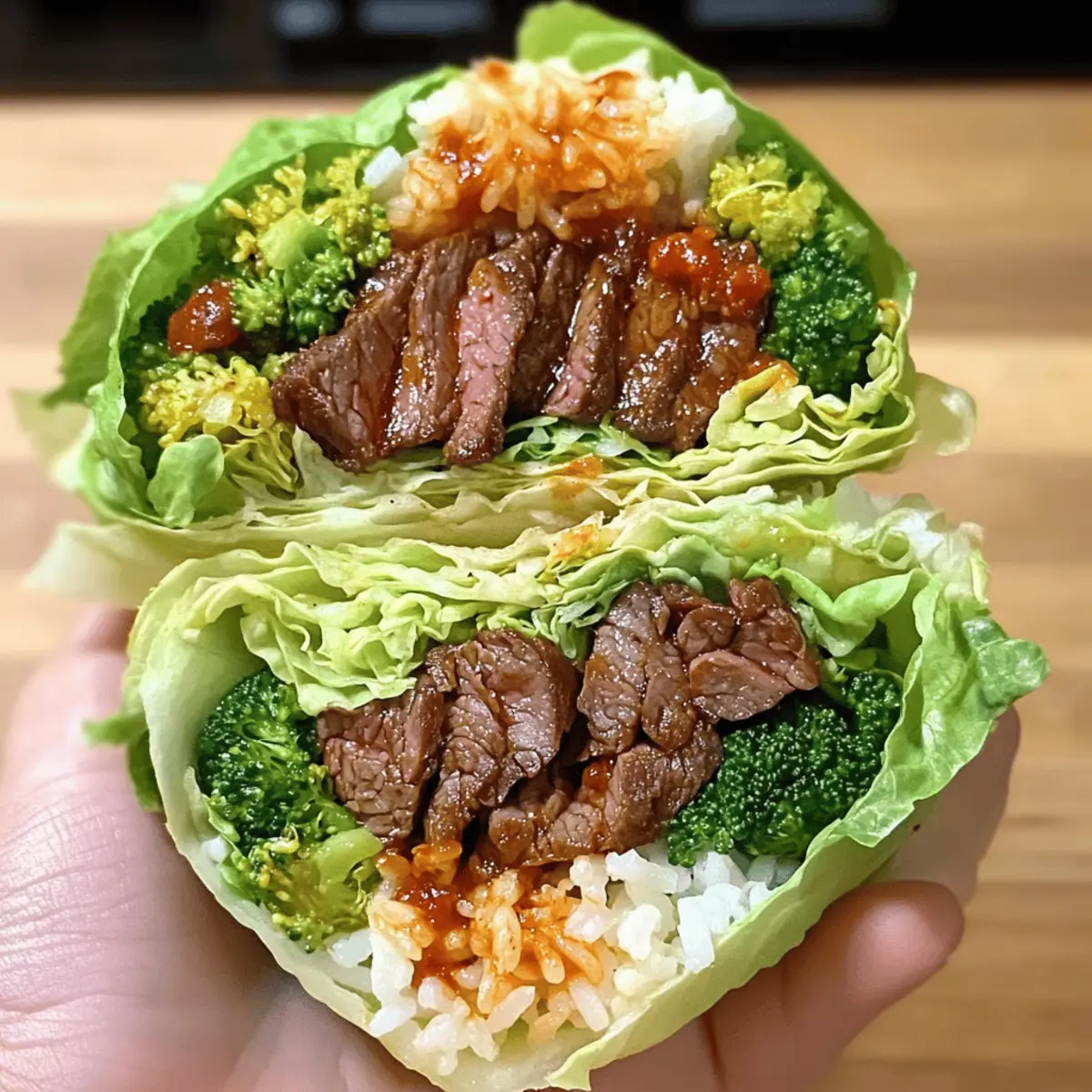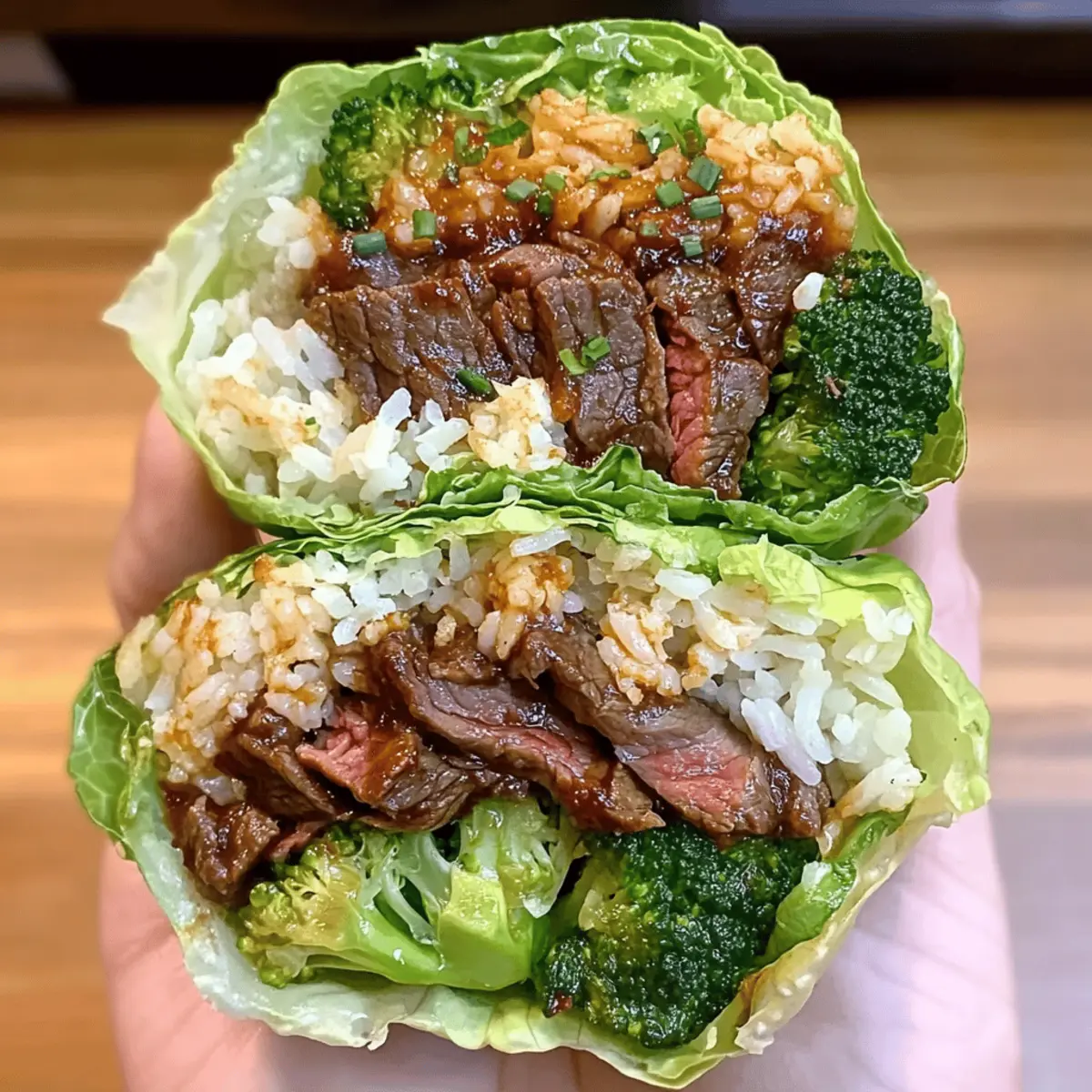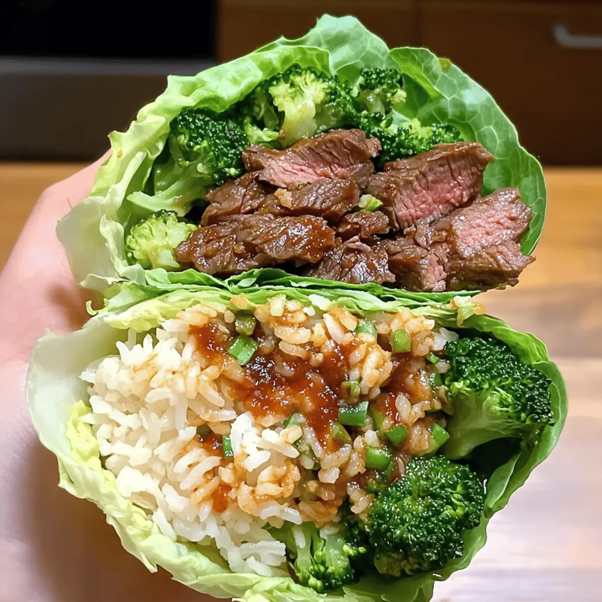 As I prepared for dinner last week, I found myself craving the zesty punch of Korean BBQ. That’s when I stumbled upon a fun twist for a quick weeknight meal: Korean BBQ Beef Lettuce Wraps! Imagine juicy, marinated skirt steak nestled in crisp iceberg leaves, complemented by fluffy rice and vibrant sautéed broccoli. This recipe not only serves up a flavorful family feast, but it’s also customizable—choose your favorite veggies and make it your own! Plus, it’s a high-protein delight that comes together in no time, making it a perfect alternative to takeout. Are you ready to bring the taste of Korea right to your kitchen? Why are Korean BBQ Beef Lettuce Wraps amazing? Quick preparation: Enjoy a delicious dinner in under 30 minutes! Perfect for busy weeknights or when unexpected guests arrive. High protein delight: These wraps are packed with tender skirt steak, making them a fantastic choice for protein lovers. Customizable goodness: Tailor the recipe to your palate! Add crunchy bell peppers or substitute broccoli with bok choy for a personal twist. Wholesome flavors: Experience the bold, savory taste of Korean BBQ right in your home, all wrapped in fresh lettuce for a light, satisfying bite. Hands-on fun: Great for family dinners, these wraps are as entertaining to make as they are to eat—everyone loves building their own! Whether you’re looking for a quick dinner or a fun weekend project, these Korean BBQ Beef Lettuce Wraps are sure to satisfy. Korean BBQ Beef Lettuce Wraps Ingredients For the Beef Marinade Skirt Steak – This is the main protein; slice it thinly for tender bites. Substitute with flank steak or sirloin for similar texture. Soy Sauce – Adds a savory umami taste; use tamari for a gluten-free alternative. Brown Sugar (or Honey) – Balances the marinade with a hint of sweetness; coconut sugar can be used as a refined sugar substitute. Sesame Oil – Gives a rich, nutty aroma; opt for toasted sesame oil for deeper flavor. Garlic Cloves – Fresh garlic boosts flavor immensely; substitute with garlic powder in a pinch. Fresh Grated Ginger – Infuses a warm, spicy kick; ground ginger works too, but use less as it’s more concentrated. Grated Onion – Adds sweetness and moisture to the marinade; shallots also work for a milder taste. Gochujang (or Korean chili flakes) – Introduces delightful heat and depth; omit for milder flavor or swap with Sriracha. For the Wraps Iceberg Lettuce Leaves – Acts as the crunchy wrap; butter or romaine lettuce can provide different flavors and textures. Cooked White Rice – Acts as a filling base; try brown rice or quinoa for a healthier option. Broccoli – Offers crunch and nutrients; substitute with any quick-cooking vegetable like bell peppers for variety. Green Onions – Mincing for garnish adds freshness; chives can be a lovely alternative. Sesame Seeds – Enhances texture and flavor; toasting them intensifies their nutty taste. These Korean BBQ Beef Lettuce Wraps are not just a dish; they’re an experience that brings joy and taste to your table! Step‑by‑Step Instructions for Korean BBQ Beef Lettuce Wraps Step 1: Marinate the Beef In a mixing bowl, combine soy sauce, brown sugar, sesame oil, minced garlic, grated ginger, and grated onion. Whisk the mixture until the sugar is dissolved. For an extra kick, add gochujang, adjusting to your heat preference. Add the skirt steak, ensuring it’s well-coated, and cover the bowl with plastic wrap. Refrigerate for 15 to 30 minutes, or up to 24 hours for deeper flavor. Step 2: Cook the Beef Heat a skillet or grill pan over medium-high heat until it’s hot, about 3-5 minutes. Add the marinated skirt steak in a single layer, being careful not to overcrowd the pan. Cook the beef for 2-3 minutes on each side until it’s browned and caramelized, achieving a delicious sear. Once done, remove the beef from the heat and let it rest for a few moments. Step 3: Prepare Rice and Broccoli While the beef is cooking, prepare your rice according to the package instructions for perfectly fluffy cooked white rice. In a separate pot, steam or sauté broccoli until it’s tender-crisp, about 3-5 minutes. This colorful vegetable will provide fresh crunch to your Korean BBQ Beef Lettuce Wraps and complement the savory flavors beautifully. Step 4: Assemble Lettuce Wraps Grab your crispy iceberg lettuce leaves, using two per wrap for added strength. Begin layering by spooning a portion of cooked rice onto the lettuce, followed by sliced beef and tender broccoli. Garnish generously with sesame seeds and diced green onions for a pop of freshness. Serve these delightful Korean BBQ Beef Lettuce Wraps immediately, inviting everyone to enjoy the fun of building their own wraps! How to Store and Freeze Korean BBQ Beef Lettuce Wraps Fridge: Store leftover wraps in an airtight container in the refrigerator for up to 3 days. Wrap any individual components separately to maintain freshness. Freezer: For longer storage, freeze the marinated beef (before cooking) in a sealed freezer bag for up to 2 months. Thaw it overnight in the fridge before cooking. Reheating: To reheat, warm the cooked beef in a skillet over medium heat until heated through. Avoid microwaving to keep the texture crispy and juicy. Assembly Tip: Store the lettuce, rice, and vegetables separately if you plan to assemble later. This way, your Korean BBQ Beef Lettuce Wraps stay crisp and fresh when you’re ready to enjoy them! Make Ahead Options These Korean BBQ Beef Lettuce Wraps are perfect for meal prep enthusiasts! You can marinate the beef up to 24 hours in advance, enhancing the flavors while saving precious time during busy weeknights. Simply combine the marinade ingredients with the skirt steak, coat well, and refrigerate. Additionally, you can cook the rice and broccoli up to 3 days ahead; store them in airtight containers in the refrigerator to maintain quality. When it’s time to serve, just sear the marinated beef for a few 
