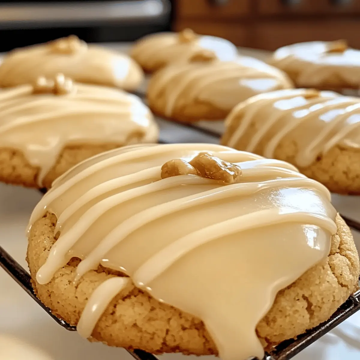 The aroma of autumn wafts through my kitchen as I prepare a batch of delightful Maple Cookies with Maple Icing. There’s something magically comforting about these soft, cake-like treats that perfectly embody the season’s spirit. Infused with a rich maple flavor and topped with silky icing, these cookies are not just a treat but a warm hug on a chilly day. What makes them even better? They’re quick to whip up, making them an ideal choice for those unexpected gatherings or cozy family nights. Plus, with variations like the Maple Pecan Cookies and Spiced Maple Cookies, there’s an option for everyone. Ready to embrace the sweetness of fall? Let’s bake some memories together! Why are Maple Cookies irresistible? Rich, Maple Flavor: Each bite bursts with authentic, earthy sweetness that captures the essence of autumn. Endless Variations: Spice it up with Maple Pecan or even try a savory twist with Maple Bacon Cookies! Quick & Easy: Perfect for any occasion, these cookies are a breeze to whip up and sure to impress guests. Soft Texture: Enjoy cake-like softness that melts in your mouth, leaving you craving more. Crowd Pleaser: Ideal for gatherings, these cookies will have everyone asking for the recipe! Don’t forget to check out my Cheesy Chicken Sauce for a savory side or an easy Salad Honey Lime to balance out the sweetness. Maple Cookies with Maple Icing Ingredients • Get ready to bake mouthwatering maple treats! For the Cookies Unsalted Butter – Provides richness and moisture; substitute with margarine for a dairy-free option. Granulated Sugar – Sweetens the cookie base; use brown sugar for extra flavor. Large Eggs – Binds the ingredients together; flax eggs are a great vegan alternative. Buttermilk – Adds moisture and tang; swap with milk mixed with lemon juice if needed. Salt – Enhances flavor and balances sweetness; don’t skip this for the best results! Vanilla Extract – Adds depth of flavor; opt for pure extract for optimal taste. Maple Extract – Provides the essential maple flavor for these cookies; pure maple syrup can be used if you’re in a pinch, but it may dilute the flavor. Baking Soda and Baking Powder – Leavening agents that help cookies rise; make sure they’re fresh for best results. All-Purpose Flour – Gives structure to the cookies; swap with gluten-free flour to make them gluten-free. For the Icing Unsalted Butter – Provides a creamy base for the icing, ensuring a luxurious texture. Brown Sugar – Adds caramel notes; coconut sugar can be a good substitute. Milk – Helps achieve the desired icing consistency; non-dairy milk works for a vegan option. Pure Maple Syrup – Enhances the icing flavor with earthy sweetness; essential to the recipe! Powdered Sugar – Sweetens and thickens the icing; ensure it’s sifted for that smooth finish. Now you’re ready to create these delightful Maple Cookies with Maple Icing that will surely warm your heart this autumn! Step‑by‑Step Instructions for Maple Cookies with Maple Icing Step 1: Prepare the Dough Preheat your oven to 350°F (175°C) and line baking sheets with parchment paper. In a large mixing bowl, cream together softened unsalted butter and granulated sugar until fluffy and light, about 3-4 minutes. Beat in large eggs one by one, ensuring each is fully incorporated before adding the next. Gradually mix in buttermilk, salt, vanilla extract, and maple extract for that essential flavor, followed by baking soda and baking powder. Finally, add all-purpose flour slowly until just combined for your maple cookie dough. Step 2: Bake the Cookies Using a tablespoon or cookie scoop, drop rounded balls of dough onto the prepared baking sheets, spacing them about 2 inches apart to allow for spreading. Bake in the preheated oven for 6-8 minutes or until the edges are set and the tops are just beginning to brown, looking slightly underbaked. Remove the sheets from the oven and allow the cookies to cool for a few minutes before gently transferring them to wire racks to cool completely, ensuring they maintain their soft texture. Step 3: Make the Icing While the cookies are cooling, prepare the maple icing. In a saucepan over medium heat, melt unsalted butter and brown sugar together, stirring constantly. Bring this mixture to a gentle boil and let it simmer for 2 minutes for caramelization while whisking. Remove from heat and stir in milk and pure maple syrup, boiling for an additional minute. Allow the icing to cool for about 15 minutes, then whisk in sifted powdered sugar until smooth and creamy, perfect for drizzling. Step 4: Ice the Cookies Once the cookies are completely cooled, it’s time to ice them with your silky maple icing. Use a spatula or a spoon to spread a generous layer of icing over each cookie while it’s still slightly warm—this helps the icing adhere. Work quickly to ensure the icing doesn’t set too much before you’ve covered all the cookies. Allow the iced cookies to sit at room temperature until the icing has fully set, which will create a lovely shiny finish. What to Serve with Maple Cookies with Maple Icing Indulging in warm, maple-flavored cookies is a delightful experience that can be complemented with the right sides and treats. Fresh Fruit Salad: Bright, tart fruits like apples and pears balance the sweetness, adding a refreshing crunch to your dessert table. The juicy bites contrast beautifully with the creamy maple icing of the cookies. Vanilla Ice Cream: The cool, creaminess enhances the maple flavors, creating a delightful fusion. A scoop next to warm cookies will melt contentment into your heart! Coffee or Hot Chocolate: Cozy beverages perfectly pair with the rich maple flavors, enhancing your cookie experience. Sipping a warm drink while enjoying these treats feels like a comforting hug on a chilly day. Cheese Platter: A variety of cheeses, especially creamy brie or sharp cheddar, creates a savory contrast to the sweet cookies. This sophisticated pairing inv