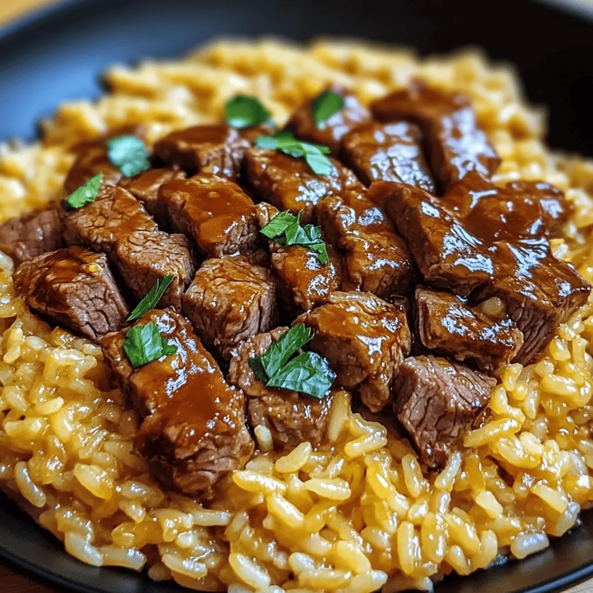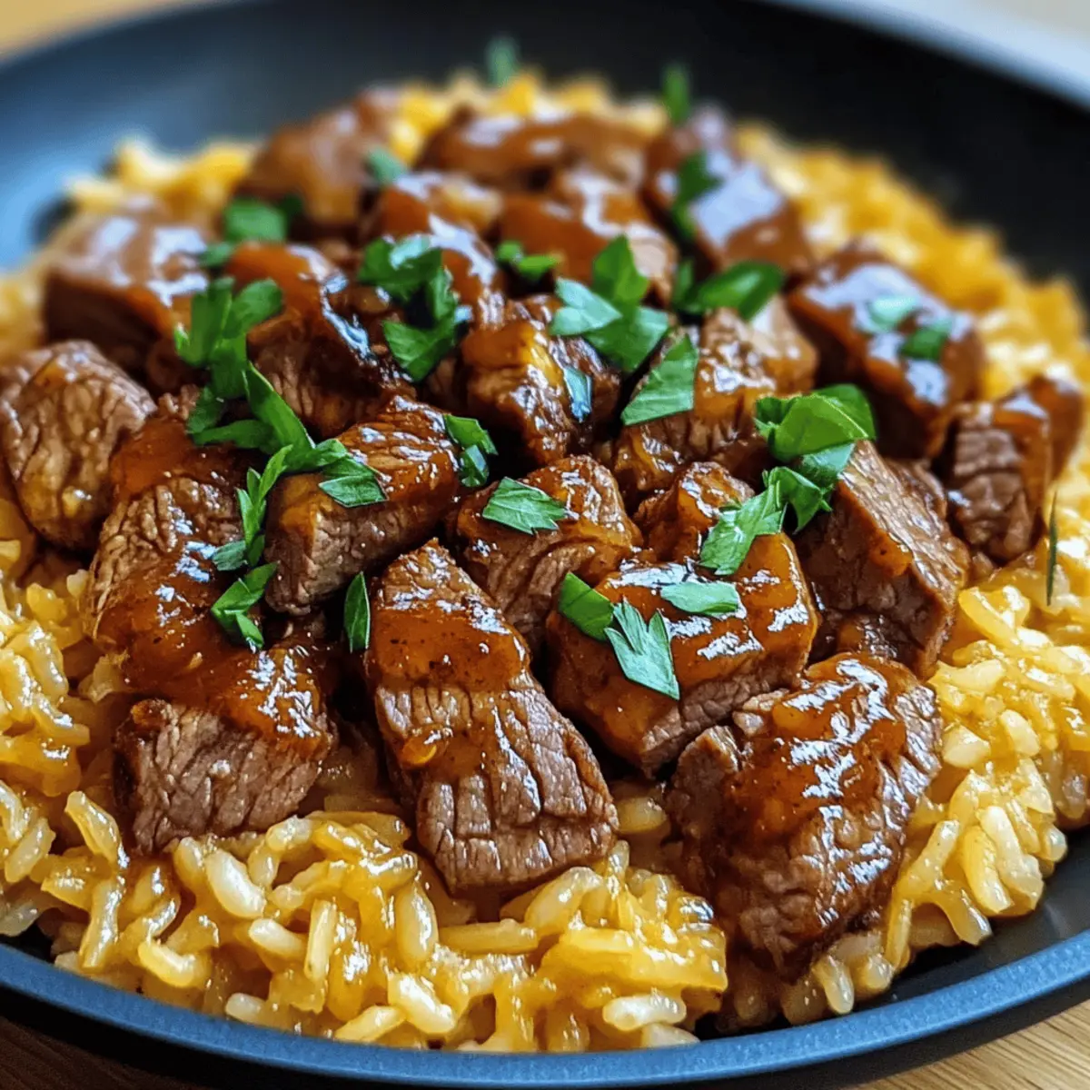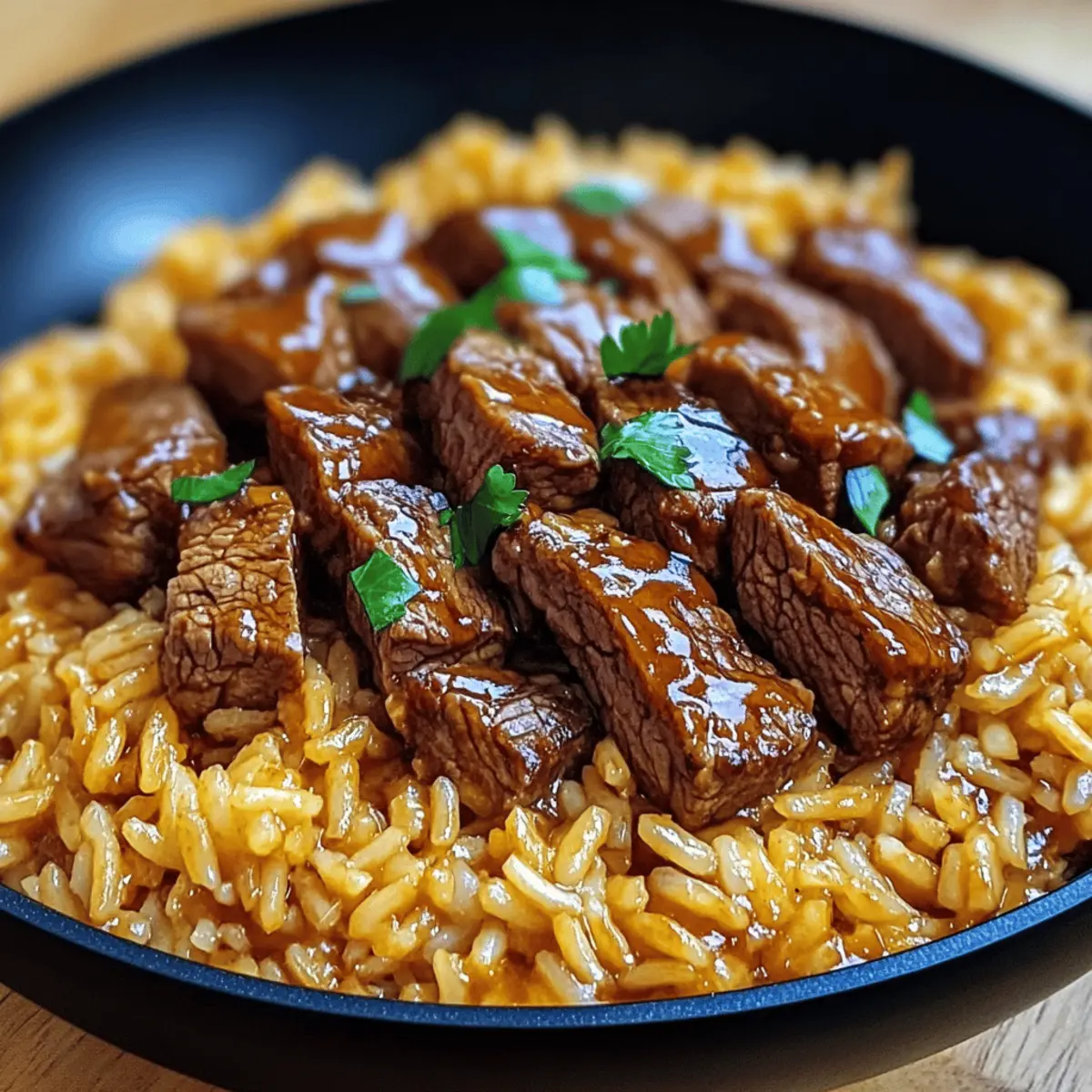 As I lifted the lid off my skillet, a heavenly aroma filled the kitchen, transporting me to a backyard barbecue with friends and laughter. This is exactly how I felt when I first created my One-Skillet Creamy Honey BBQ Steak Rice—where tender steak meets a creamy, sweet-tangy sauce in one easy dish. Not only is this recipe perfect for hectic weeknights, but it also showcases a comforting, satisfying twist on dinner that everyone will love. With minimal cleanup and the ability to customize ingredients based on what you have at home, this dish is a culinary lifesaver. Are you ready to tantalize your taste buds and spark joy at your dinner table with this delightful flavor combination? Why is this dish a weeknight winner? Simplicity at Its Best: This One-Skillet Creamy Honey BBQ Steak Rice is a breeze to whip up, combining rich flavors in just one pan—perfect for busy nights! Creamy, Flavorful Result: The blend of heavy cream and honey BBQ sauce creates a dreamy, velvety texture that pairs beautifully with the savory steak. Versatile Ingredients: Customize with your favorite proteins or even vegetable options to suit everyone’s taste. Minimal Cleanup: With everything cooked in one skillet, you’ll spend less time washing up and more time enjoying your meal. Crowd-Pleaser: Bursting with flavor, it’s an instant hit for family dinners, while its easy preparation makes it ideal for any weeknight gathering. No-Fuss Comfort Food: Just like my favorite Hot Honey Chicken, this dish will leave everyone feeling cozy and satisfied! One-Skillet Creamy Honey BBQ Steak Rice Ingredients • To create this delightful One-Skillet Creamy Honey BBQ Steak Rice, gather these essential ingredients for a cozy flavor experience! For the Steak Flank Steak – A flavorful and tender cut, but sirloin or skirt steak can be great substitutes for this dish. Soy Sauce – Adds depth and umami; try using low-sodium for a lighter touch. Worcestershire Sauce – Provides richness; omit it for a vegetarian option if needed. Garlic Powder – Enhances flavor; fresh minced garlic can be swapped in easily. Smoked Paprika – This adds a lovely smoky note; regular paprika also works in a pinch. For the Cooking Base Olive Oil – Perfect for searing your steak and ensuring that lovely, browned finish. Butter – Creates creaminess and enriches the sautéed veggies; opt for dairy-free butter for a plant-based option. Onion – Sautéed to create a sweet base flavor; substitutes like shallots or leeks can work as well. Garlic – Fresh minced garlic adds aroma and depth; use extra powder if you’re in a hurry. Uncooked Rice – The heart of the dish; jasmine or long-grain white rice are great choices. For the Sauce and Finishing Touches Beef Broth – Adds moisture and enhances the rice; switch to vegetable broth for a vegetarian delight. Heavy Cream – This gives the sauce its rich, velvety texture; use coconut cream if you’re looking for a dairy-free alternative. Shredded Cheddar Cheese – Intensifies creaminess; feel free to use dairy-free cheese for a lighter dish. Honey BBQ Sauce – The star for that sweet-tangy flavor; you can easily make this homemade if you’re up for it! Step‑by‑Step Instructions for One-Skillet Creamy Honey BBQ Steak Rice Step 1: Marinate the Steak In a medium bowl, whisk together soy sauce, Worcestershire sauce, garlic powder, smoked paprika, salt, and pepper. Add the flank steak to the mix, ensuring it’s well coated in the marinade. Let it sit for 15 to 60 minutes to absorb those delicious flavors, while you prepare the rest of your ingredients. Step 2: Prepare Honey BBQ Sauce In a separate bowl, combine barbecue sauce, honey, Dijon mustard, apple cider vinegar, and optional chili powder. Whisk until smooth and well-blended, then set it aside. This homemade touch will give your One-Skillet Creamy Honey BBQ Steak Rice a beautifully balanced sweet-tangy flavor. Step 3: Sear Steak Heat a large skillet over medium-high heat and add olive oil, swirling it to coat. Once the oil shimmers, add the marinated steak and cook for 2-3 minutes per side, achieving a nice brown crust. For medium-rare, cook for a total of 5-6 minutes. Once done, transfer the steak to a plate and keep it warm while you sauté the aromatics. Step 4: Sauté Aromatics In the same skillet, melt butter over medium heat, scraping up any flavorful bits left from the steak. Add chopped onion and minced garlic, sautéing for 3-4 minutes until they turn soft and fragrant. This will create a fragrant base for your One-Skillet Creamy Honey BBQ Steak Rice. Step 5: Toast Rice Add the uncooked rice to the skillet, stirring it into the fragrant onion and garlic mixture. Toast the rice for 1-2 minutes, allowing it to absorb flavors and slightly become golden. This step enhances the final dish’s flavor and is key for perfect results. Step 6: Cook Rice Pour in beef broth, stirring to combine. Bring the mixture to a boil, then reduce heat to low, cover the skillet, and let it simmer for 15-18 minutes until the rice is tender and most of the liquid is absorbed. This is where the magic happens for your One-Skillet Creamy Honey BBQ Steak Rice! Step 7: Create Sauce Once the rice is done, reduce the heat and stir in heavy cream along with shredded cheddar cheese. Mix until the cheese is melted and the sauce is smooth, seasoning to taste with salt and pepper. If desired, add an extra pat of butter for richness. Step 8: Combine Ingredients Return the cooked steak to the skillet and pour the prepared honey BBQ sauce over it. Stir gently to combine everything and let it simmer for an additional 2-3 minutes, allowing the flavors to meld beautifully. Your One-Skillet Creamy Honey BBQ Steak Rice is almost ready! Step 9: Serve Garnish your dish with freshly chopped parsley for a pop of color and freshness. Serve hot, inviting everyone to gather around for a comforting meal that’s bursting with flavor. Enjoy the delightful harmony of creamy text