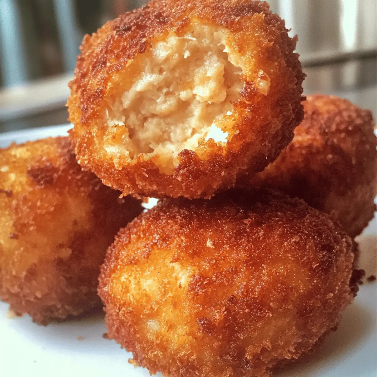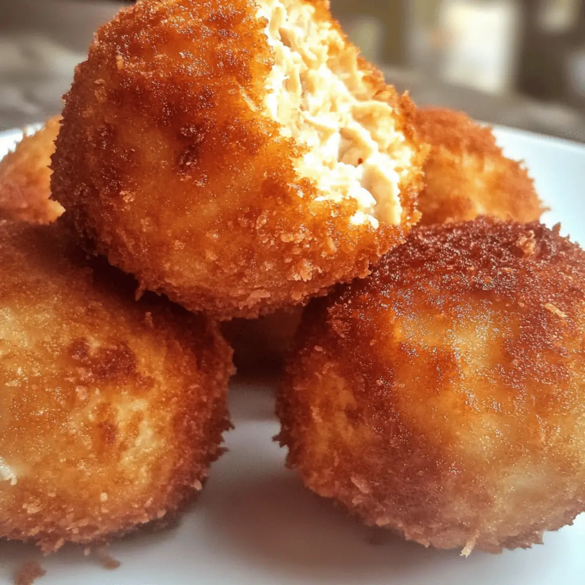 As I sifted through my grandmother’s handwritten recipes, a delightful reminder of home emerged: Pennsylvania Dutch Chicken Croquettes. These golden, crispy bites bring together the warmth of comfort food with the creativity of using leftover chicken. Not only are they incredibly satisfying to make, but they also offer flexibility with cooking methods—deep-frying, air-frying, or pan-frying—making it easy to whip up a nourishing meal any night of the week. Each croquette boasts a creamy filling that melts in your mouth, transporting you to the heart of Amish cuisine. Ready to savor this nostalgic dish? Let’s dive into the recipe that combines simplicity and flavor just like a hearty family gathering! Why are these croquettes so special? Nostalgic Flavor: Each bite of these Pennsylvania Dutch Chicken Croquettes is a warm hug for your taste buds, echoing traditional Amish cuisine. Easy to Make: With simple ingredients and straightforward steps, even beginner cooks can create something truly special. Versatile Cooking Options: Whether you prefer deep-frying for that classic crunch or air-frying for a healthier option, these croquettes are adaptable to your cooking style. Great for Leftovers: Transform leftover chicken into a delicious meal instead of letting it go to waste; it’s a clever way to utilize what you have on hand. Crowd-Pleasing Delight: Perfect for family gatherings or casual dinner parties, these croquettes are sure to impress your guests. Pair them with a side of chicken gravy from my recipe for Cheesy Chicken Enchiladas for a completic meal! Pennsylvania Dutch Chicken Croquettes Ingredients For the Croquette Filling • Cooked Chicken – Use leftover chicken or turkey for the best texture and flavor. • Butter – Adds richness and is essential for creating the creamy filling. • Flour – Thickens the filling; a gluten-free flour blend can be used as a substitute. • Half and Half – Creates a creamy texture; you can swap with whole milk or a milk alternative if desired. • Salt – Enhances overall flavor; adjust to your taste. • Black Pepper – Adds subtle heat; freshly ground pepper elevates the taste. • Garlic Powder – Provides depth; fresh garlic is a great alternative if you prefer. • Minced Onion Flakes – Adds aromatic flavor; fresh chopped onion can be substituted. • Eggs – Binds the mixture and helps with coating; use flaxseed meal as a vegan alternative. For the Coating • Panko/Bread Crumbs – Provides that delightful crunch; opt for gluten-free breadcrumbs for a gluten-free option. For Frying • Oil – Essential for frying; peanut or canola oil works perfectly. For air-frying, a light spray of oil is recommended to achieve a crispy finish. With these ingredients, you’re one step closer to creating mouthwatering Pennsylvania Dutch Chicken Croquettes that will comfort and delight your family! Step‑by‑Step Instructions for Pennsylvania Dutch Chicken Croquettes Step 1: Prepare the Sauce Begin by melting 4 tablespoons of butter in a medium saucepan over medium heat. Stir in ¼ cup of flour, cooking until the mixture is smooth and golden, about 2 minutes. Gradually add 1 cup of half and half while whisking continuously until the sauce thickens, which should take about 5 minutes. Remove from heat and season with salt, black pepper, garlic powder, and minced onion flakes to taste. Step 2: Combine Chicken and Sauce Once your sauce has cooled slightly, mix in 3 cups of chopped cooked chicken until evenly coated. Use a spatula to combine everything thoroughly, creating a rich filling for the croquettes. Ensure each piece of chicken is enveloped in that creamy goodness. Cover your mixture and set it aside to cool completely for about 30 minutes, allowing the flavors to meld. Step 3: Form the Croquettes Scoop portions of the cool chicken mixture—about 2 tablespoons each—into your hands and form them into balls or patties. You should aim for 9-12 croquettes depending on your size preference. Place each croquette on a parchment-lined tray and refrigerate them for at least 1 hour, or overnight, to firm up. This helps them hold their shape during cooking. Step 4: Coat the Croquettes In a shallow bowl, beat 2 eggs until well mixed. Take each chilled croquette and dip it into the egg, ensuring it’s fully coated. Then roll it in a bowl of panko or bread crumbs until completely covered. Repeat this process for all croquettes, creating that delightful crunchy outer layer. Set the coated croquettes back on the parchment-lined tray. Step 5: Cooking the Croquettes Heat your oil in a deep fryer or a large skillet until it reaches 325-350°F. Carefully place the croquettes in batches; do not crowd the pan. Fry for about 3-4 minutes per side until they are golden brown and crisp. Use a slotted spoon to transfer the croquettes to a paper towel-lined plate to drain excess oil, allowing them to cool slightly while maintaining that crispy texture. Step 6: Serve and Enjoy Serve your golden Pennsylvania Dutch Chicken Croquettes hot, ideally with a side of chicken gravy and mashed potatoes for a delightful comfort meal. The contrast of the crispy exterior against the creamy, flavorful filling is sure to be a hit at any gathering. Enjoy the delicious results of your home-cooking efforts! Expert Tips for Pennsylvania Dutch Chicken Croquettes Cool the Sauce First: Allow the sauce to cool before mixing it with the chicken; this prevents a messy mixture and ensures a smooth filling. Perfect Coating Technique: Make sure each croquette is fully coated in egg and breadcrumbs. This creates that irresistible crunch when frying. Watch the Frying Temperature: Keep your oil temperature between 325-350°F for the best results. Use a thermometer to avoid overheating and ensure crispy croquettes. Batch Cooking: Fry in small batches to maintain the oil’s temperature, giving each croquette enough space to cook evenly and achieve perfect crispiness. Explore Flavor Vari