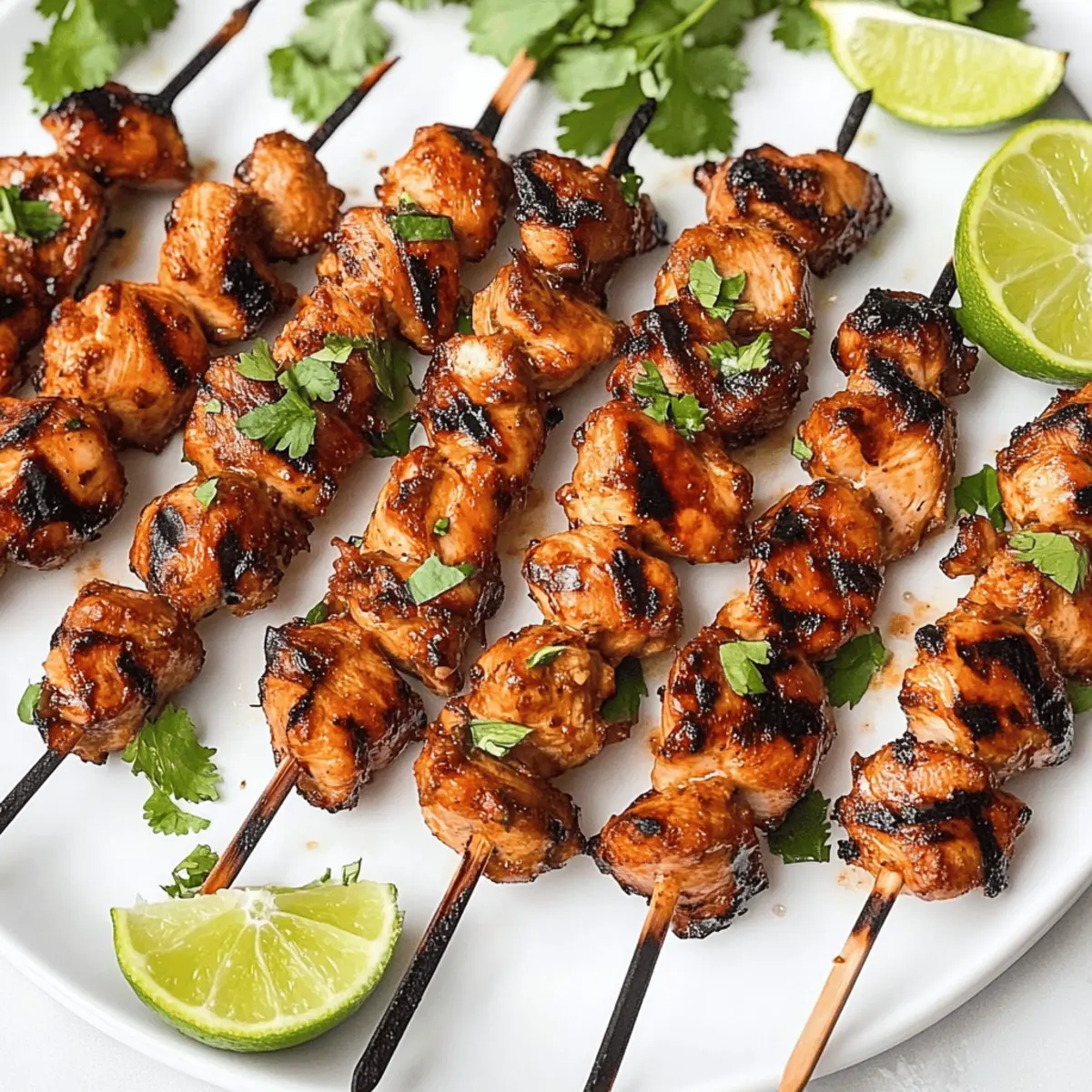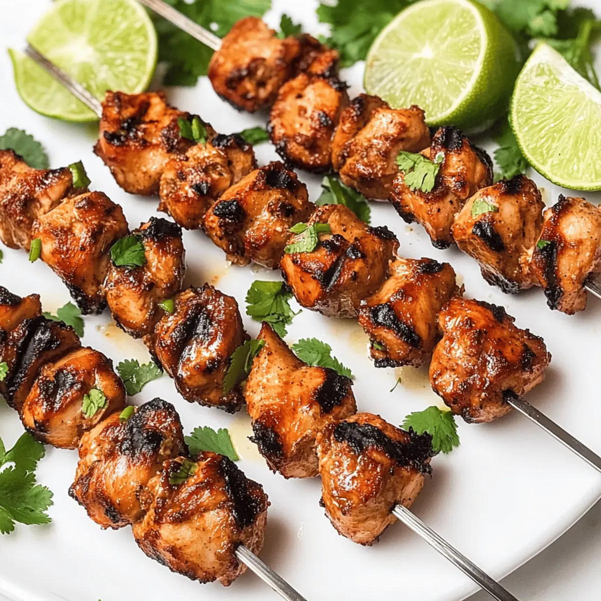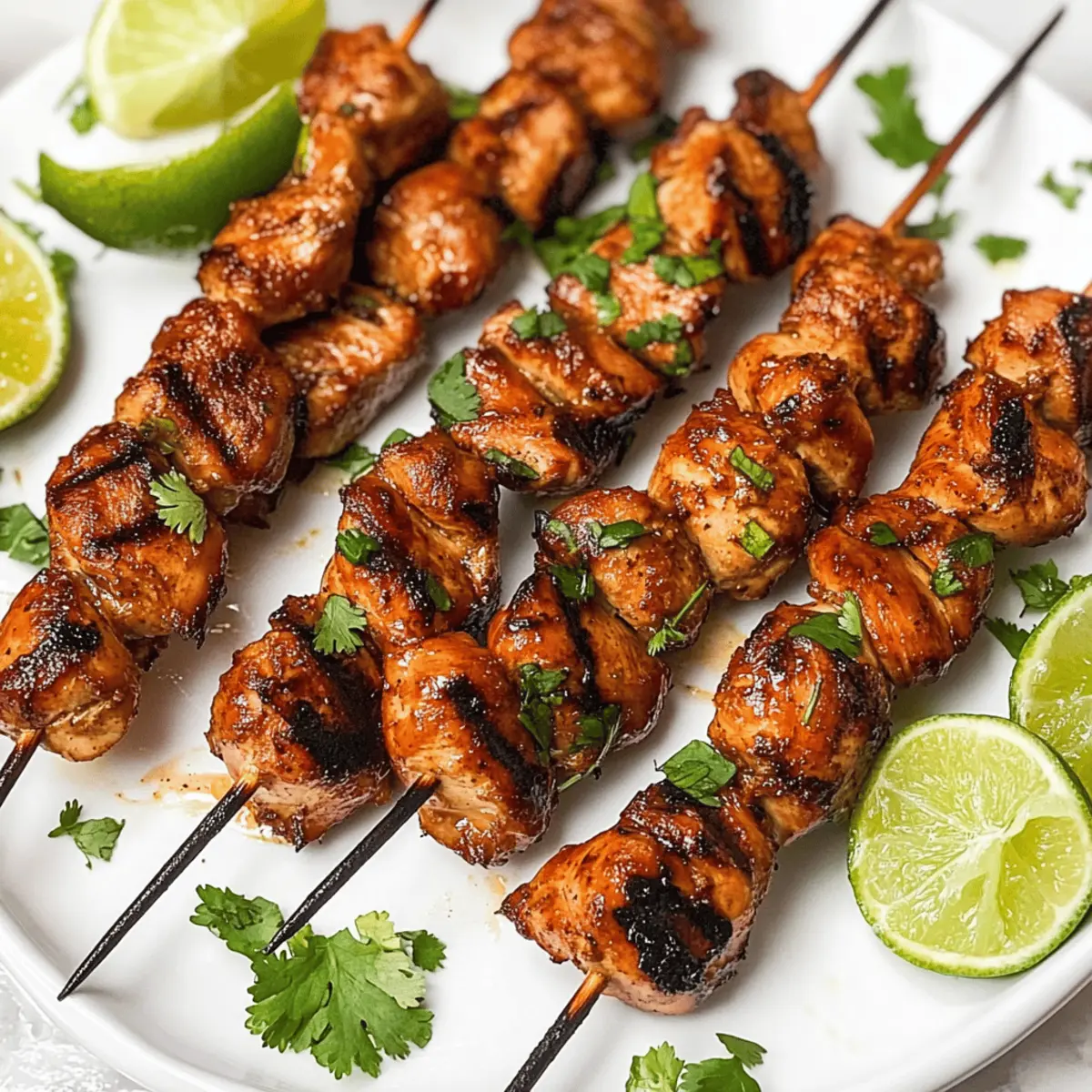 The moment the marinade hits the chicken, I can already imagine the smoky aroma wafting through my kitchen. These Peruvian Grilled Chicken Skewers are more than just a meal; they’re a vibrant celebration of flavors that meld South American zest with a hint of Asian flair. With their quick preparation and crowd-pleasing allure, these skewers make entertaining guests a breeze—perfect for weekend get-togethers or cozy family dinners. Trust me, the tender, juicy bites, complemented by a delightful char, will leave your taste buds dancing. So, are you ready to transform your grilling game and bring a little Peruvian spice to your table? Why Are These Skewers So Irresistible? Bold flavors explode with every bite, thanks to the unique marinade that infuses the chicken with South American and Asian spices. Quick and easy to prepare, these skewers are perfect for busy weeknights or when entertaining guests. Crowd-pleasing delight! Everyone will love the vibrant colors and juicy texture. Versatile options like adding your favorite vegetables give you flexibility while grilling. Plus, the leftovers can be stored for a quick meal throughout the week. Don’t forget to check out my recipe for Grilled Chicken Cobb for more delightful chicken ideas! Peruvian Grilled Chicken Skewers Ingredients Dive into the deliciousness with these essential ingredients! For the Marinade Medium Cloves Garlic – Adds aromatic flavor; fresh garlic provides the best taste. Ground Cumin – Provides an earthy, warm spice; can substitute with coriander if needed. Chili Powder – Contributes heat and depth of flavor; adjust to taste for spice level. Crushed Red Pepper Flakes – Adds heat; optional or adjustable based on preference. Smoked Paprika – Introduces a smokiness that complements the grilled flavor; regular paprika can be used for a milder taste. Brown Sugar – Balances the savory notes with sweetness; honey or maple syrup can be alternatives. Extra Virgin Olive Oil – Promotes moisture and aids in marinating; can substitute with avocado oil. Soy Sauce – Offers umami depth; use tamari for a gluten-free option. Fresh Lime Juice – Brightens the dish with acidity; lemon juice can be a substitute. Fresh Ginger – Enhances flavor with a zesty kick; ground ginger can substitute in a pinch. For the Skewers Boneless, Skinless Chicken Thighs – Ideal for tenderness and flavor; can use chicken breasts for a leaner option. Unleash your culinary creativity by gathering these ingredients for your mouthwatering Peruvian Grilled Chicken Skewers! Step‑by‑Step Instructions for Peruvian Grilled Chicken Skewers Step 1: Prepare Chicken Begin by trimming any excess fat from the boneless, skinless chicken thighs. Cut the chicken into 1-inch pieces, ensuring they are uniform for even cooking. This preparation ensures your Peruvian Grilled Chicken Skewers remain tender and juicy, setting the stage for a delicious meal. Step 2: Make Marinade In a medium bowl, combine the minced garlic, ground cumin, chili powder, crushed red pepper flakes, smoked paprika, and brown sugar. Drizzle in the extra virgin olive oil, soy sauce, fresh lime juice, and grated ginger, mixing well until fully combined. The aromatic marinade will infuse the chicken with vibrant flavors. Step 3: Marinate Place the chicken pieces into a large zip-lock bag. Pour in half of the flavorful marinade, seal it tightly, and massage the bag gently to ensure even coating. Refrigerate for 30 minutes, or up to 4 hours for deeper flavor absorption. Allowing the chicken to marinate is key for those irresistible Peruvian Grilled Chicken Skewers. Step 4: Prepare Grill While the chicken marinates, preheat your gas grill to medium-high heat, or prepare your charcoal grill. Ensure the grill grates are clean and oiled to prevent sticking. This step is crucial for achieving that beautiful char on your skewers and enhancing their smoky flavor. Step 5: Skewer Chicken Once marinated, remove the chicken from the bag and discard any remaining marinade. Thread the marinated chicken pieces onto soaked wooden skewers, ensuring they fit snugly but not too tightly. This will help the heat circulate while grilling, forming perfect, juicy Peruvian Grilled Chicken Skewers. Step 6: Grill Place the skewers on the preheated grill, ensuring they have enough space for heat circulation. Cook for approximately 10-12 minutes, turning them every 3-4 minutes until they are golden brown and cooked through. Brush with the reserved marinade halfway through cooking to enhance the flavor. Step 7: Serve and Rest Once cooked, carefully remove the skewers from the grill and place them on a plate. Tent them with foil and let them rest for about 5 minutes. This resting period allows the juices to redistribute, ensuring each bite of your Peruvian Grilled Chicken Skewers is juicy and packed with flavor before serving. Peruvian Grilled Chicken Skewers Variations Feel free to let your creativity shine as you customize these skewers with delightful twists and substitutions! Vegetable Additions: Throw in bell peppers, onions, or zucchini alongside the chicken for a colorful, healthful boost. Grilling veggies brings out their natural sweetness, harmonizing beautifully with the spices of the chicken. Spicy Kick: For an extra layer of heat, add diced jalapeños or use a spicier chili powder in your marinade. This fiery twist will surely excite spice lovers! Herb Infusion: Consider adding fresh cilantro or parsley to the marinade for an herbal note. These fresh herbs add a bright touch that pairs perfectly with the grilled flavors. Citrus Zest: Add some lemon or orange zest to your marinade for a zesty, aromatic flavor dimension. The bright citric punch brings a cheerful brightness to the skewers that your taste buds will adore. Sauce Pairing: Serve with a tangy Peruvian Green Sauce or a creamy avocado dip for a sensational flavor contrast. This option adds layers of excitement to each bite and is perfect for dippi