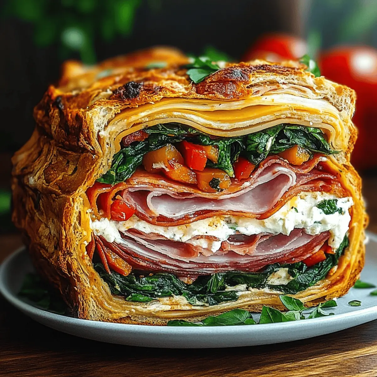 As I was packing for a sunny afternoon picnic, the thought hit me: why settle for traditional sandwiches when you can create something extraordinary? That’s when the Pressed Italian Picnic Sandwich Loaf became my go-to solution. This flavorful loaf is a vibrant medley layered with savory Italian deli meats, zesty olive tapenade, and crisp vegetables, making it not only visually stunning but also incredibly portable. Perfect for gatherings, this recipe is a delightful way to impress friends without spending hours in the kitchen. Plus, its customizable nature means you can easily adapt it to suit vegetarians or even breakfast cravings. Are you ready to elevate your picnic game with this simple yet impressive creation? Why is this sandwich a crowd favorite? Flavorful Layers: Each bite of the Pressed Italian Picnic Sandwich Loaf bursts with rich, savory flavors from quality meats and a vibrant olive tapenade. Customizable Delight: Whether you’re feeding a crowd at a picnic or preparing a quick meal, this recipe can easily adapt to fit any dietary need, including vegetarian options. Make-Ahead Marvel: Prep it the night before! The longer it sits, the better the flavors meld, making it a stress-free option for gatherings. Convenience: This no-mess loaf slices beautifully, making it the perfect portable dish for any event or lunchbox. Impressive Presentation: With its colorful layers, this sandwich not only tastes amazing but also looks stunning on any platter, drawing compliments from friends and family. For more fun recipe ideas, check out these Breakfast Sandwiches Discover for an early morning treat! Pressed Italian Picnic Sandwich Loaf Ingredients For the Bread • Loaf of bread – Choose a sturdy loaf to ensure it holds the layers without falling apart. For the Spread • Olive tapenade – This adds a punchy, salty flavor while serving as a moisture barrier; try cream cheese as a rich alternative. For the Meats • Salami – Adds a rich oiliness that helps protect the bread from becoming soggy; prosciutto works as a delicate substitute. • Ham – Offers a sweet, savory note; turkey is a lean option for a healthier twist. For the Vegetables • Peppers (roasted or pickled) – They introduce a tangy crunch; sweet bell peppers provide a milder taste while spicy options add heat. • Spinach or arugula – Brings a fresh, vibrant touch; substitute with mixed greens if desired. For the Cheese • Cheese (e.g., provolone or mozzarella) – Delivers creaminess and depth; feta or pepper jack can add a unique flair. Make your Pressed Italian Picnic Sandwich Loaf the star of your next gathering or picnic! Step‑by‑Step Instructions for Pressed Italian Picnic Sandwich Loaf Step 1: Prepare the Bread Start by carefully slicing off the top quarter of your sturdy loaf of bread. Hollow out the interior to create a 1-inch thick shell, ensuring to leave enough support for the fillings. The hollowed loaf should feel firm and substantial, ready to hold your delicious layers. Step 2: Spread Tapenade Generously slather olive tapenade on both the base and the top of the hollowed loaf. For those who prefer a creamier texture, consider adding a layer of cream cheese beneath the tapenade. This moisture barrier will enhance the flavor and help keep the bread from becoming soggy. Step 3: Layer Ingredients Begin layering your Pressed Italian Picnic Sandwich Loaf with salami, followed by ham, roasted peppers, spinach, and cheese. Repeat the layers, packing them tightly to maximize flavor and ensure structural integrity. Aim for vivid colors and textures, creating an eye-catching cross-section for when you slice it later. Step 4: Compress the Load Once all layers are in place, gently replace the top of the loaf. Wrap the entire sandwich tightly in plastic wrap and then in foil. Weigh it down with a skillet and cans, placing it in the refrigerator for at least 6–8 hours or overnight. This compression melds the flavors beautifully, resulting in a compact loaf that’s easy to slice. Step 5: Serve After the resting period, carefully unwrap your Pressed Italian Picnic Sandwich Loaf. For a delicious finishing touch, brush the exterior with olive oil or melted butter for a glossy sheen. Slice into thick pieces and arrange on a platter, perhaps serving with olives or pickles for an appealing presentation. Variations & Substitutions for Pressed Italian Picnic Sandwich Loaf Feel free to get creative with your Pressed Italian Picnic Sandwich Loaf and make it uniquely yours, brimming with flavors and textures to delight your taste buds! Vegetarian Delight: Fill with grilled vegetables, hummus, and crumbled feta for a vibrant vegetarian twist. This variation is not only colorful but bursting with nutrients, making it a perfect option for non-meat lovers. Breakfast Sandwich: For a morning-inspired treat, substitute salami and ham with scrambled eggs, bacon, and cheddar cheese. This breakfast version is hearty and satisfying, perfect for brunch gatherings or even a hearty breakfast on-the-go. Coastal Tuna: Swap the deli meats for a fresh tuna salad mixed with diced cucumbers for a light, coastal flavor. The addition of crunchy cucumbers brings a refreshing crispness, making every bite enjoyable. Spicy Kick: Add sliced jalapeños or a drizzle of sriracha for a spicy touch that will awaken your taste buds. Just a few slices can elevate the sandwich to a whole new level of flavor without overwhelming the palate. Rustic Italian: Replace the olive tapenade with pesto for a rich herbal flavor. This substitution adds a beautiful green hue and a depth of flavor that pairs well with the other ingredients. Cheese Swap: Experiment with different cheeses like goat cheese or smoked gouda for a unique twist. Each cheese brings its own character to the dish, allowing you to discover a delicious combination. Grainy Goodness: Use whole grain or multi-grain bread instead of traditional white bread for added texture and wholesomeness. T