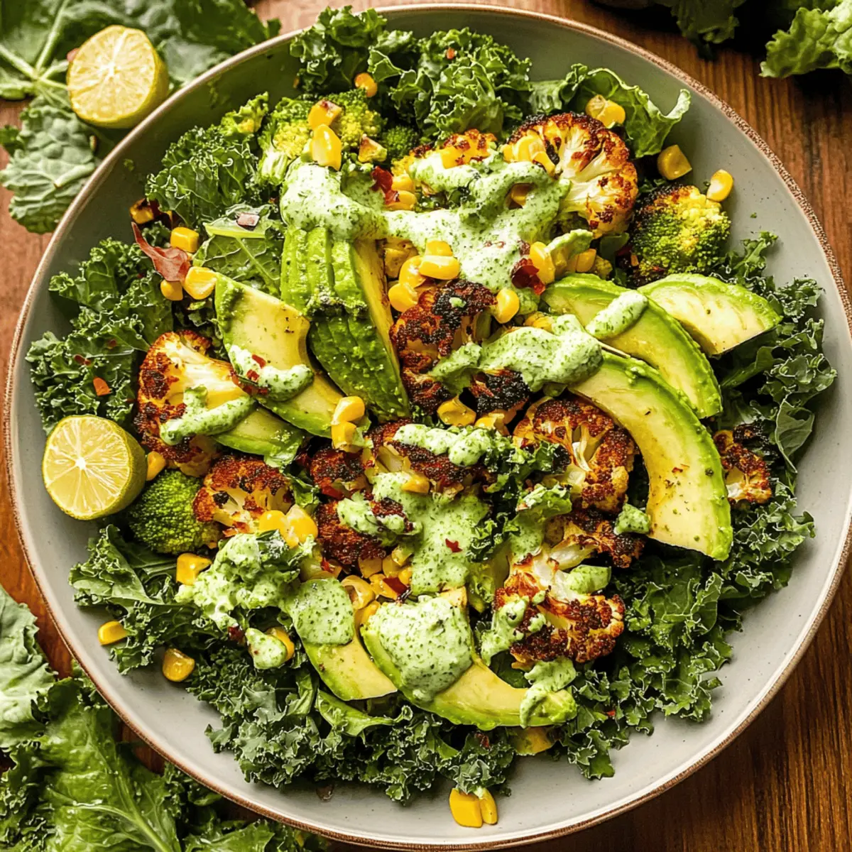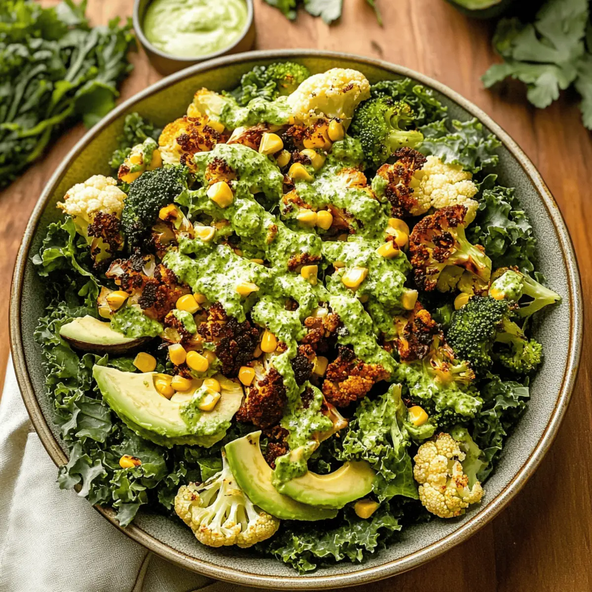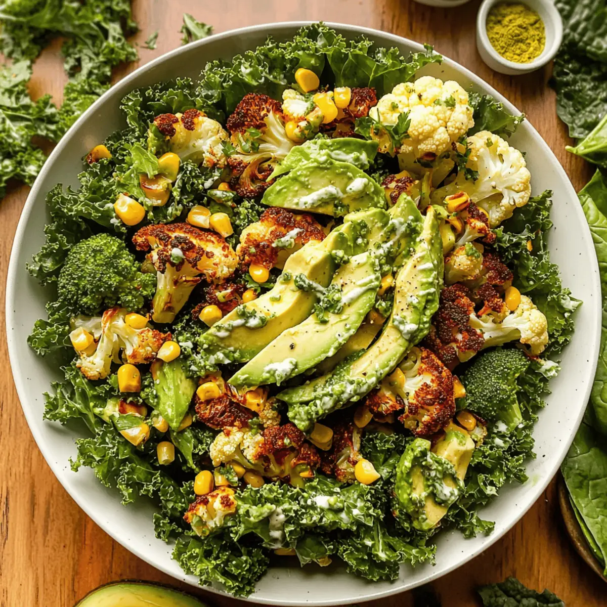 • Kale Massage: Ensure you massage the kale thoroughly for 2-3 minutes; this softens it and enhances the flavor absorption in your Roasted Cauliflower Green Goddess Salad.