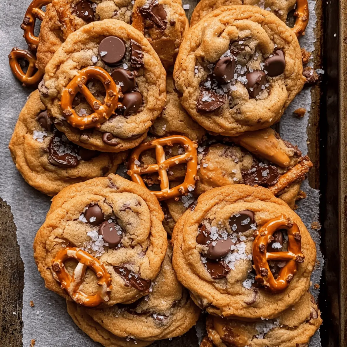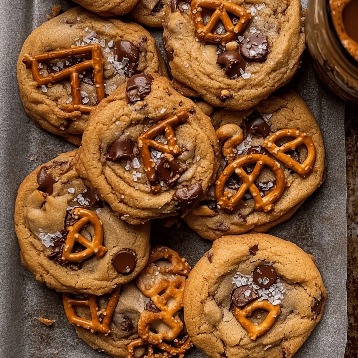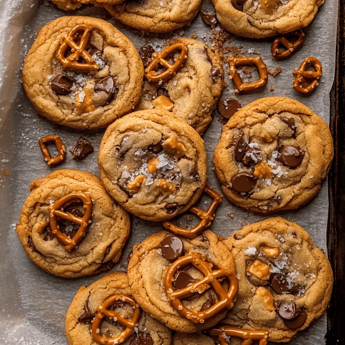 Delight in the rich flavors with these delightful Salted Pretzel Peanut Butter Bourbon Chocolate Chip Cookies!