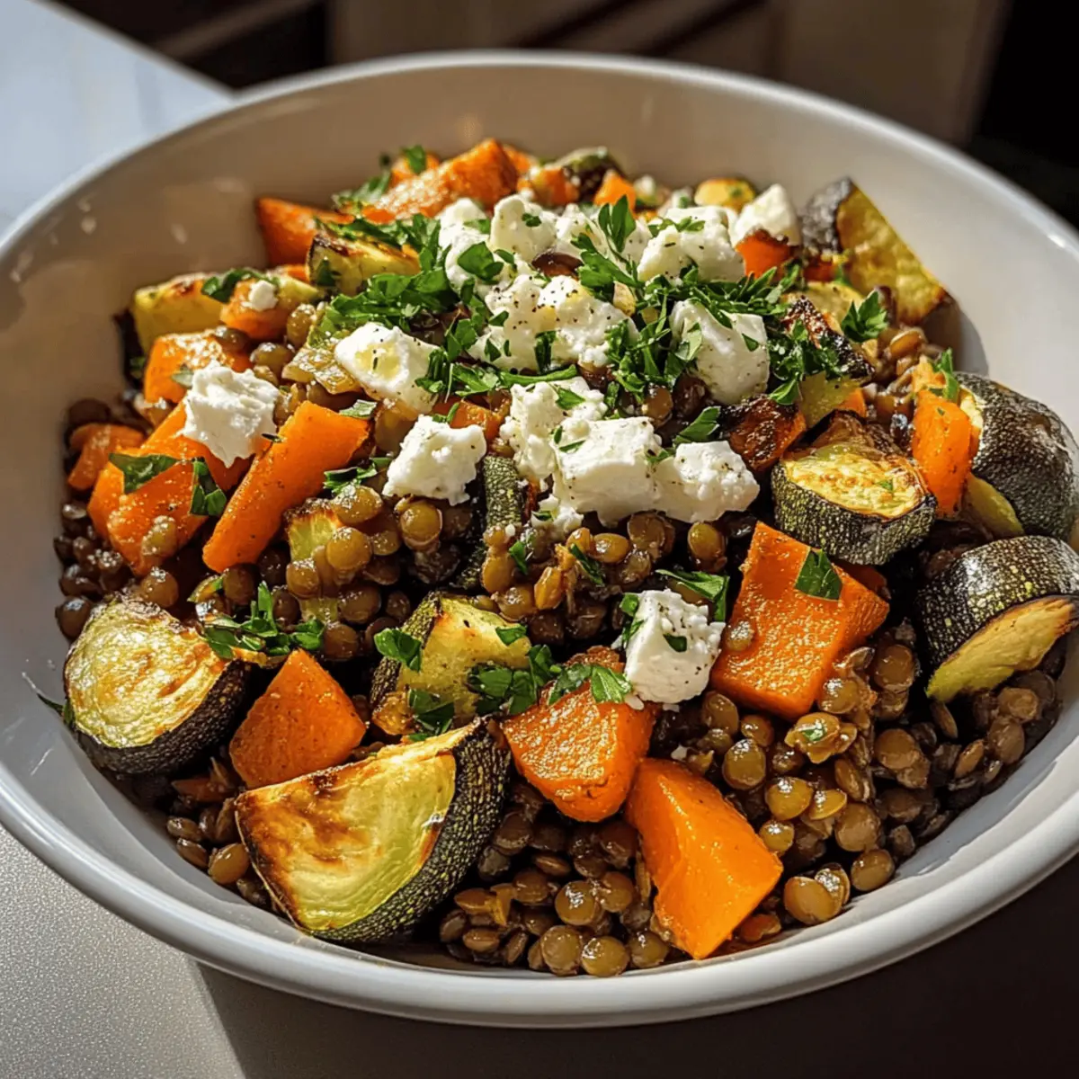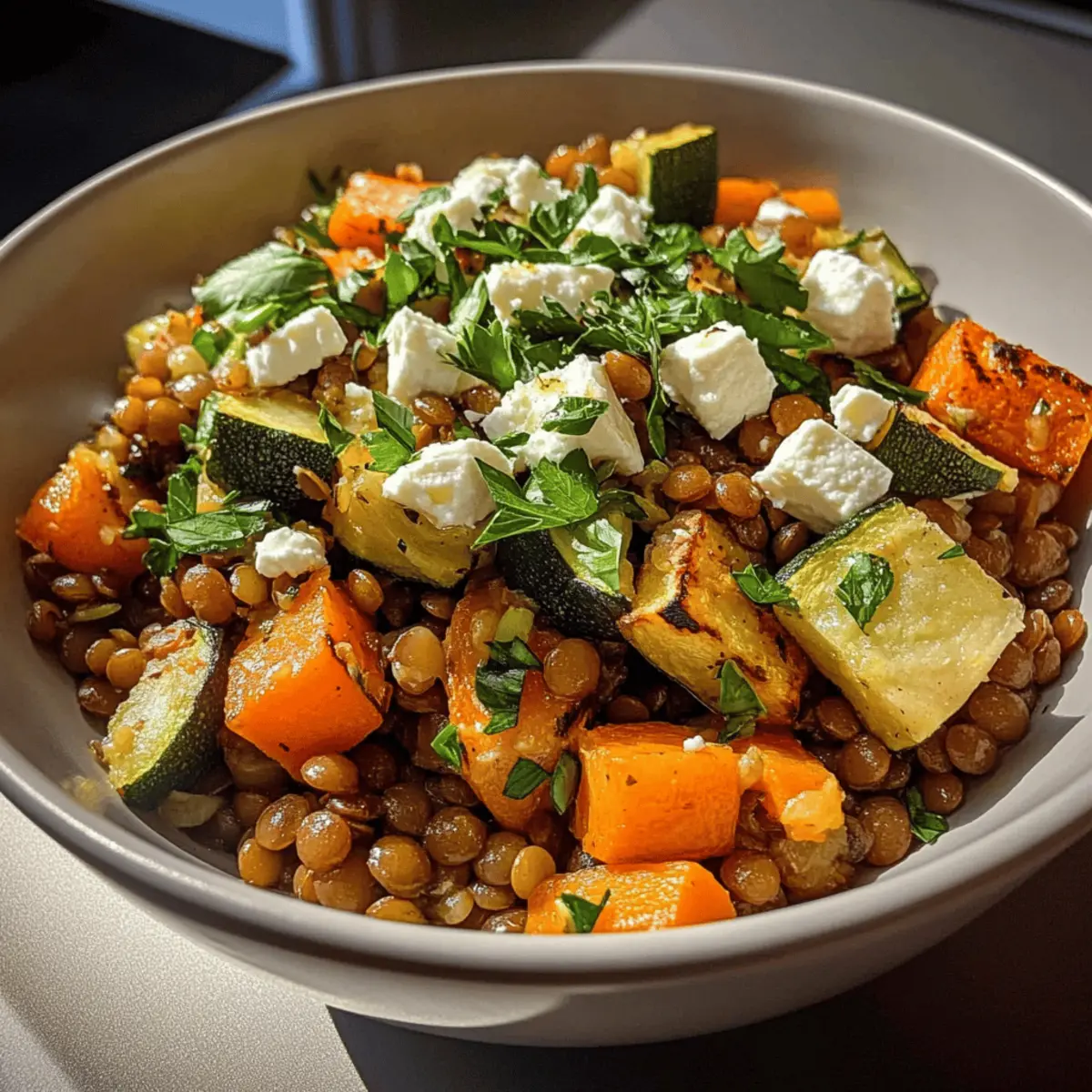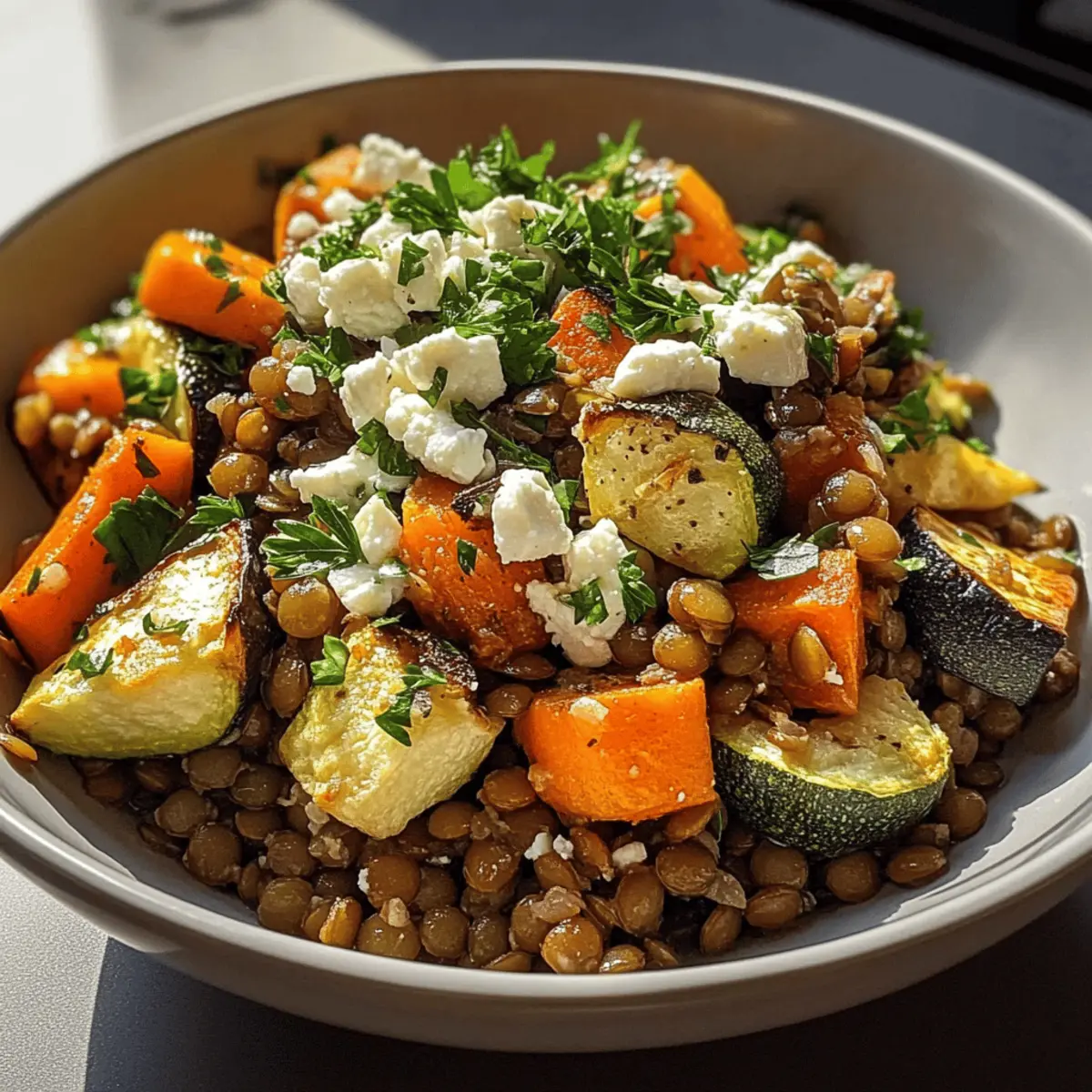 The aroma of roasted vegetables wafts through the kitchen, inviting everyone to gather around the table. This Savory Veggie Lentil Salad is a delightful hit for those days when you crave something nourishing yet satisfying. With a generous 15g of protein per serving, this high-fiber dish not only fuels your body but also keeps hunger at bay. Perfect for meal prep, it’s an effortless way to enjoy bright, fresh flavors throughout the week. And the best part? You can customize it to suit your taste—swap in seasonal veggies or mix in your favorite nuts for added crunch. So, what combination will you create that makes this salad uniquely yours? Why is This Salad So Special? Nutrient-Packed Goodness: With 15g of protein per serving, this Savory Veggie Lentil Salad is a powerhouse of nutrition, keeping you energized throughout the day. Versatile Flavor Profiles: Enjoy endless customization options! Substitute seasonal vegetables or mix in toasted nuts or seeds for texture, allowing you to reinvent this dish each time you make it. Effortless Meal Prep: Ideal for busy weeks, this meal is easy to whip up in advance. Just store it for up to four days in an airtight container to savor farm-fresh flavors all week long. A Cozy Comfort Bowl: The blend of tender lentils and sweet caramelized veggies creates a comforting, satisfying mix that’s sure to delight your palate. Quick & Simple: No need for complicated techniques; this recipe is straightforward and perfect, even for novice cooks. Combine flavor and simplicity for an unforgettable meal! Elevate your lunch game today with this delightful recipe and consider pairing it with a refreshing Strawberry Spinach Salad for a vibrant meal. Savory Veggie Lentil Salad Ingredients For the Base Dried Green or Brown Lentils – Provides plant-based protein and fiber; for quicker prep, canned lentils can be substituted. Mixed Vegetables (e.g., bell peppers, zucchini, sweet potatoes) – Adds color and nutrition; substitute any seasonal vegetables for freshness. For Roasting Olive Oil – Used for roasting vegetables, adding healthy fats; can substitute with avocado oil for a different flavor. Salt – Enhances overall flavor; adjust according to dietary needs. Black Pepper – Adds spice and depth; use white pepper for a milder flavor. Garlic Powder – Contributes savory taste; fresh garlic can be used for more intensity. Smoked Paprika – Gives a smoky flavor to the vegetables; regular paprika can be used if preferred. For Freshness Fresh Parsley – Brightens the dish with freshness; can substitute with cilantro for a different herbaceous note. Lemon Juice – Provides acidity that balances the flavors; lime juice can be a suitable substitute. Optional Add-ins Feta Cheese – Adds creaminess and a salty kick; omit for a dairy-free version. Feel the comfort and joy of savoring this Savory Veggie Lentil Salad—a vibrant dish full of flavor and nutrients that’s sure to become a family favorite! Step‑by‑Step Instructions for Savory Veggie Lentil Salad Step 1: Preheat and Prepare Begin by preheating your oven to 400°F (200°C). While the oven warms, wash and chop your mixed vegetables, like bell peppers, zucchini, and sweet potatoes, into bite-sized pieces. In a large bowl, toss the chopped veggies with a generous drizzle of olive oil, salt, black pepper, garlic powder, and smoked paprika until they are evenly coated and glistening with spice. Step 2: Roast the Vegetables Spread the seasoned vegetables in a single layer on a baking sheet lined with parchment paper. Roast in the preheated oven for about 25-30 minutes, flipping halfway through. You’ll know they’re ready when they are tender and their edges are slightly caramelized, emitting a delicious aroma that fills your kitchen with warmth. Step 3: Cook the Lentils While the vegetables are roasting, rinse the dried lentils under cold water to remove any debris. In a medium saucepan, bring the rinsed lentils to a boil in salted water over medium-high heat and then reduce the heat to maintain a simmer. Cook for approximately 20 minutes, or until the lentils are tender yet firm, then drain and allow them to cool in another bowl to stop the cooking process. Step 4: Combine Ingredients Once the roasted vegetables have cooled slightly, transfer them to a large mixing bowl. Add in the cooled lentils and give everything a gentle toss to combine. Squeeze fresh lemon juice over the top to add a bright acidity, ensuring each ingredient mingles beautifully for a flavorful Savory Veggie Lentil Salad. Step 5: Fold in Fresh Herbs and Cheese Next, mix in the chopped fresh parsley for a burst of freshness, and if desired, crumble in some feta cheese for an optional creamy texture. Allow your salad to sit for about 10 minutes at room temperature, giving the flavors time to blend and enhance each other before serving up this vibrant, nourishing dish. Savory Veggie Lentil Salad Variations Feel free to make this Savory Veggie Lentil Salad your own by experimenting with these exciting twists! Seasonal Veggies: Substitute with butternut squash in the fall or asparagus in the spring for a refreshing change. Toasted Nuts: For added crunch, mix in toasted almonds, walnuts, or pumpkin seeds to elevate the texture and nutrition. Nuts not only add a delightful crunch but also enhance the salad’s flavor profile. Dairy-Free Delight: Omit feta cheese and replace it with a handful of avocado cubes for creaminess without dairy. Your salad will remain luscious and satisfyingly rich. Spice It Up: Add a pinch of red pepper flakes or chili powder for a kick of heat. This little addition transforms the salad into a zesty dish that packs a punch! Herb Variations: Swap parsley for fresh basil or dill to change the flavor dynamics altogether. Each herb brings its unique taste, making the salad vibrant and interesting. Vinaigrette Boost: Drizzle your favorite vinaigrette—like balsamic or lemon-tahini—for a tangy finish. This bring