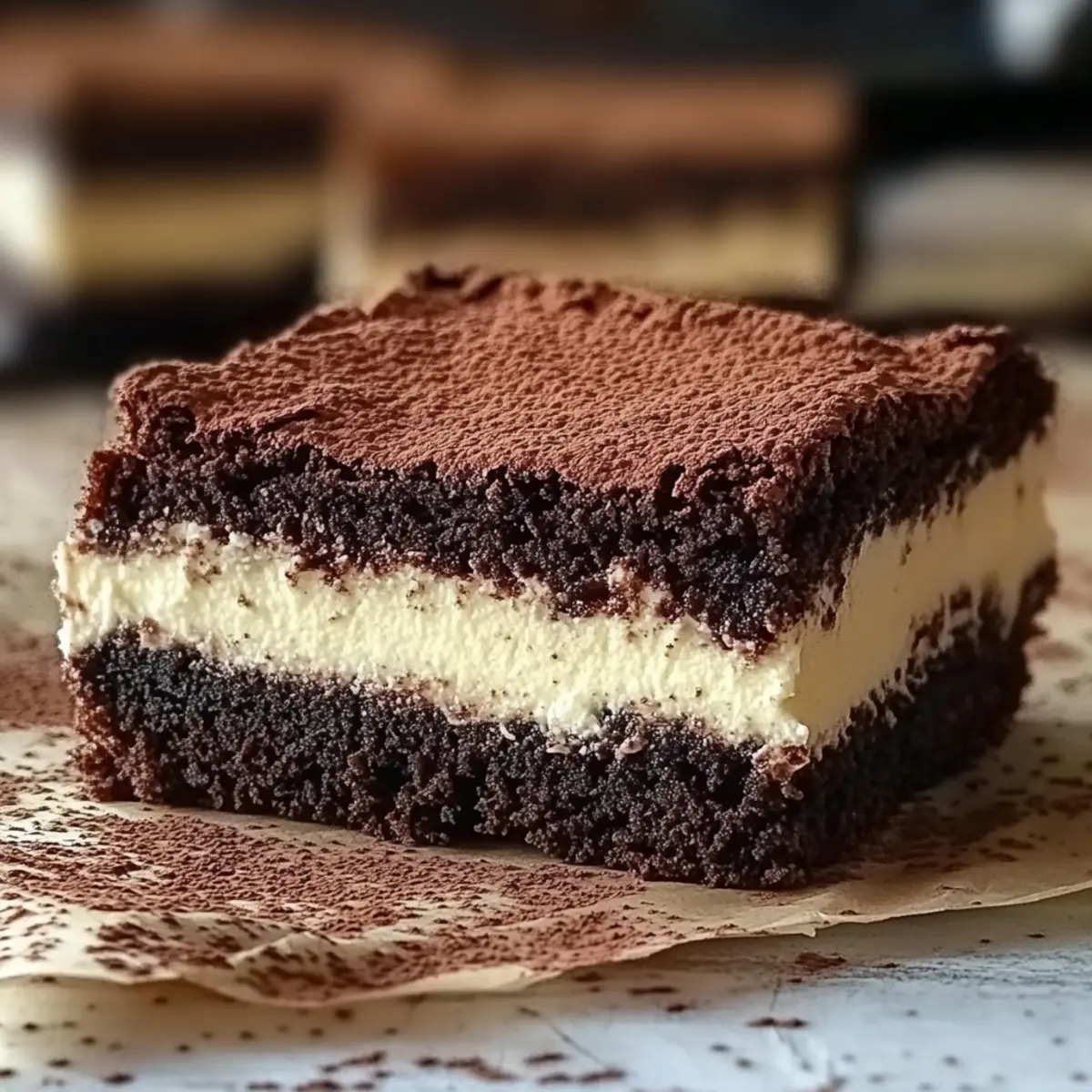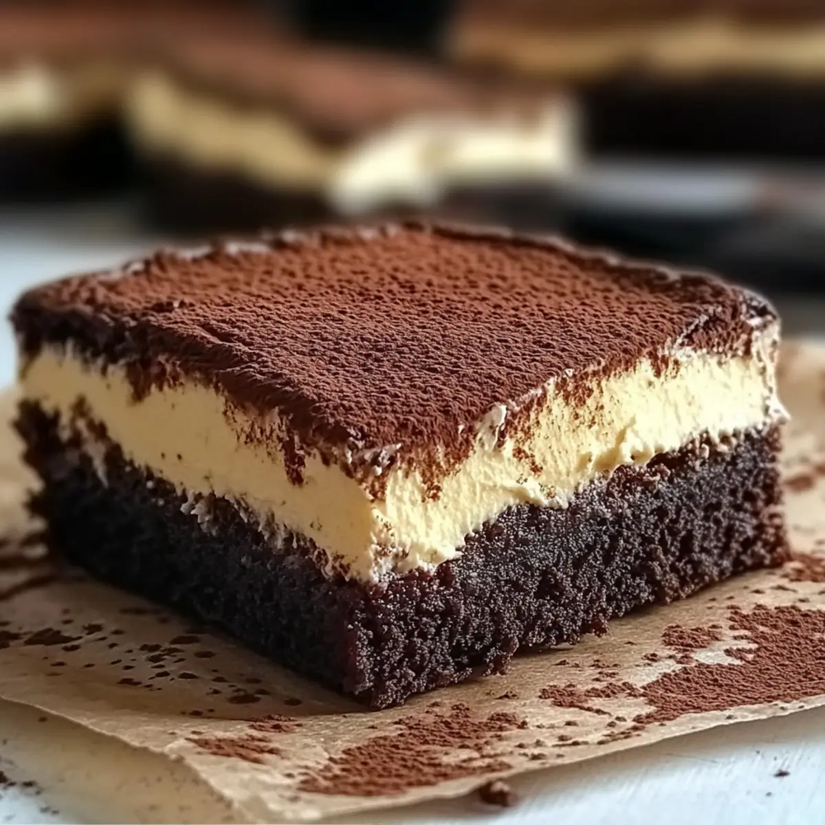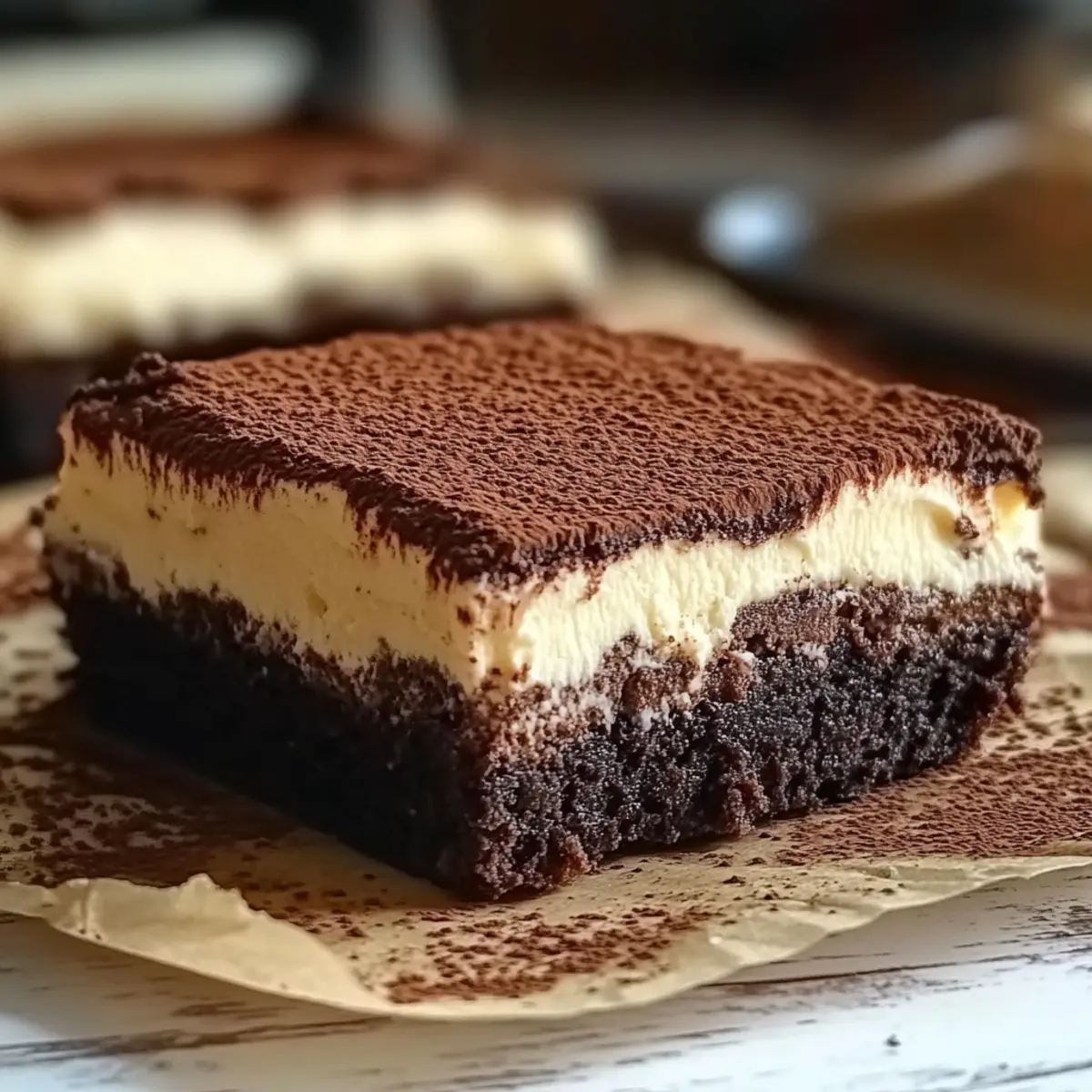 As I stood in my kitchen, the aroma of freshly brewed coffee wafted through the air, transforming my home into a cozy café. It was the perfect moment to whip up a batch of Tiramisu Brownies—an irresistible blend of my favorite dessert flavors. With layers of fudgy chocolate brownies harmoniously topped with creamy mascarpone and a hint of espresso, this recipe is a delightful fusion that never fails to impress. Not only are these treats easy to prepare, but they also make for a show-stopping dessert that you can feel proud to serve at gatherings or enjoy as a personal indulgence. Can you think of a better way to elevate your baking game? Let’s dive into this delicious adventure! Why are Tiramisu Brownies irresistible? Fusion of Favorites: Tiramisu Brownies combine two beloved desserts into one scrumptious treat, offering a unique twist that will wow your guests. Effortlessly Simple: With straightforward steps and accessible ingredients, you can enjoy gourmet flavors without complex techniques. Versatile Indulgence: Perfect for gatherings or a cozy night in, these brownies pair beautifully with a hot cup of coffee or a scoop of vanilla ice cream. Crowd-Pleasing Delight: The rich, chocolatey base meets a creamy, coffee-infused layer, ensuring every bite is a harmonious blend of textures and flavors. Make-Ahead Magic: These brownies can be prepared in advance, making them a convenient option for entertaining or satisfying midnight cravings! Tiramisu Brownies Ingredients For the Brownie Base Butter – Provides richness and moisture; can substitute with margarine for a dairy-free option. Sugar – Sweetens the brownies, enhancing their flavor; brown sugar can add extra moisture and a hint of caramel. Eggs – Binds the mixture, providing structure to the brownies; no substitutions suggested for binding. Vanilla Extract – Adds depth of flavor; use pure vanilla for a more authentic taste. Flour – Forms the structure of the brownie; whole wheat flour can be used for a healthier option, but may alter texture. Cocoa Powder – Contributes the chocolate flavor and color; use Dutch-process cocoa for a deeper flavor. Baking Powder – Helps the brownies rise slightly, giving them a lighter texture; avoid skipping this ingredient. Salt – Balances sweetness and enhances flavor. Espresso Powder – Intensifies the coffee flavor; instant coffee can be used as a substitute if espresso powder is unavailable. For the Tiramisu Layer Mascarpone Cheese – Creamy element for the tiramisu layer; ricotta can be a lighter substitute, but will change flavor. Heavy Cream – Adds lightness and richness to the mascarpone layer; whipped topping can be used for a lighter version. Powdered Sugar – Sweetens the mascarpone cream layer smoothly; regular sugar can be used, but will not yield as smooth a texture. Strong Coffee – Soaks into the mascarpone layer, enhancing the tiramisu flavor; use brewed coffee for best results. Cocoa Powder (for dusting) – Final touch that elevates the presentation and ties to the tiramisu theme. With these delicious Tiramisu Brownies ingredients in hand, you’re on your way to creating a dessert that’s both comforting and sophisticated! Step‑by‑Step Instructions for Tiramisu Brownies Step 1: Preheat and Prepare the Pan Begin by preheating your oven to 350°F (175°C). While the oven warms up, grease an 8×8-inch baking pan or line it with parchment paper for easy removal later. This initial step ensures your Tiramisu Brownies bake evenly while giving you a head start on preparation. Step 2: Melt Butter and Mix Wet Ingredients In a medium saucepan, melt ½ cup of butter over low heat. Once melted, remove from heat and stir in 1 cup of sugar until well combined. Add in 2 large eggs and 1 teaspoon of vanilla extract, whisking until the mixture is smooth and glossy. This creaming process infuses the brownies with flavor and moisture. Step 3: Combine Dry Ingredients In a separate bowl, whisk together ¾ cup of flour, ½ cup of cocoa powder, 1 teaspoon of baking powder, ½ teaspoon of salt, and 2 teaspoons of espresso powder. Make sure to mix the dry ingredients thoroughly to avoid clumps. Gradually fold this dry mixture into the wet ingredients, using a spatula to combine until just combined, ensuring not to overmix. Step 4: Bake the Brownie Base Pour the brownie batter into your prepared pan, spreading it evenly with a spatula. Place the pan in the preheated oven and bake for 25-30 minutes, or until a toothpick inserted in the center comes out with moist crumbs but not wet batter. This will create a perfect fudgy base for your Tiramisu Brownies. Step 5: Cool the Brownies Once baked, remove the pan from the oven and let the brownies cool in the pan on a wire rack for about 30 minutes. Allowing the brownies to cool completely is crucial; it prevents the mascarpone layer from melting and helps maintain a delightful texture. Step 6: Prepare the Mascarpone Layer In a mixing bowl, combine 1 cup of mascarpone cheese with ½ cup of heavy cream. Using an electric mixer, whip until the mixture becomes fluffy and holds soft peaks. Gradually sift in ½ cup of powdered sugar and add 1 teaspoon of vanilla extract, mixing until everything is smooth and creamy. This layer adds a rich, indulgent contrast to your Tiramisu Brownies. Step 7: Assemble the Brownies Spread the whipped mascarpone mixture evenly over the cooled brownie base, smoothing it out with a spatula for an even layer. This rich creaminess infuses the brownies with a luxurious tiramisu flavor, making each bite heavenly. Step 8: Drizzle with Coffee Brew a strong cup of coffee and let it cool slightly. Drizzle the coffee over the mascarpone layer, allowing it to soak in and intensify the tiramisu flavor. This step enhances the overall experience, blending coffee with the brownie and mascarpone layers. Step 9: Dust and Refrigerate Sprinkle a light dusting of unsweetened cocoa powder over the top for an elegant finish. Cover 